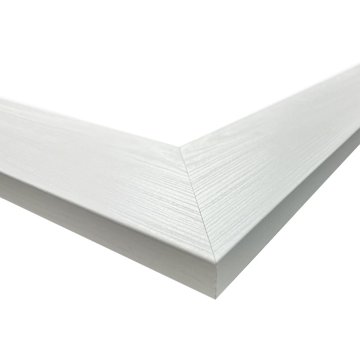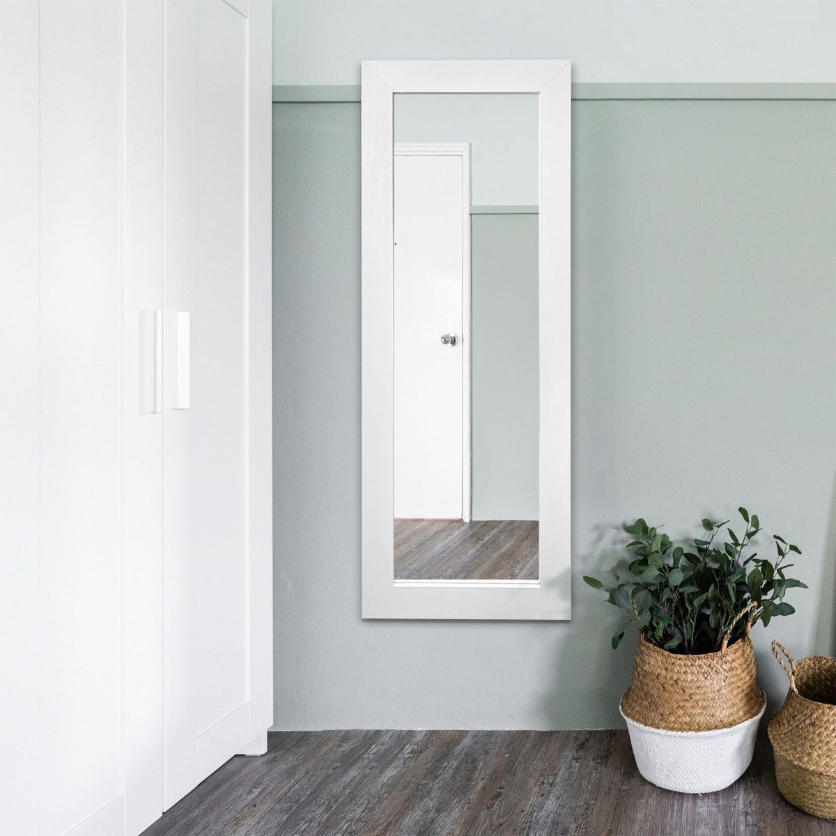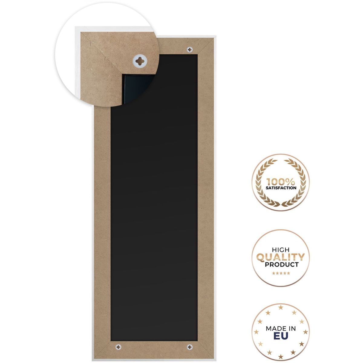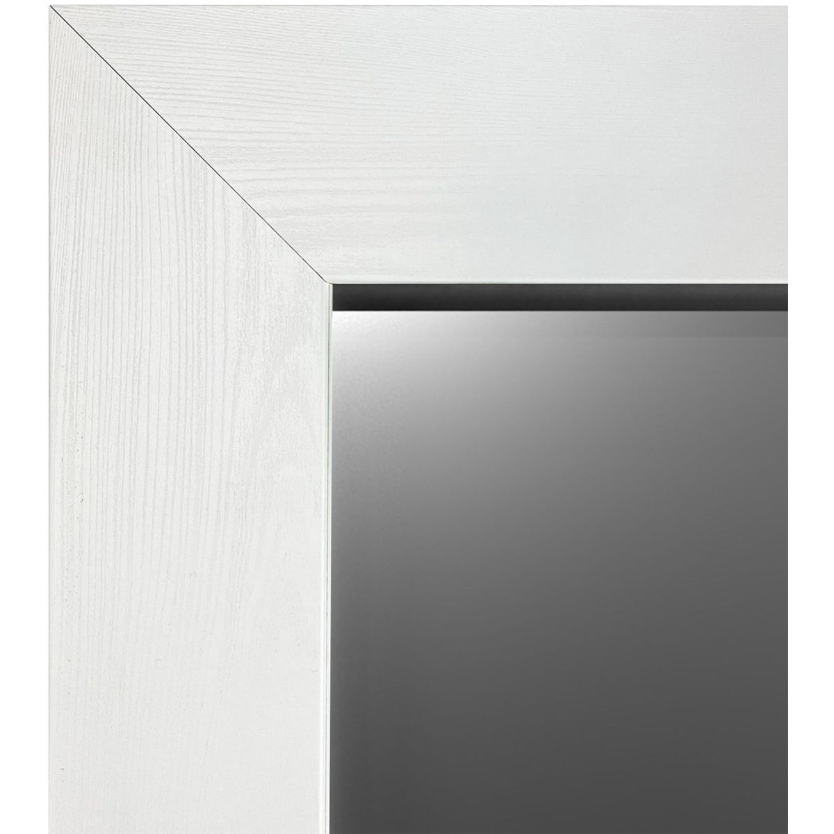 Hängender Spiegel, vertikal oder horizontal montierbar. Material: MDF mit hochwertiger Furnierbeschichtung, Spiegelglas, Rahmen in Weißholzfarbe.