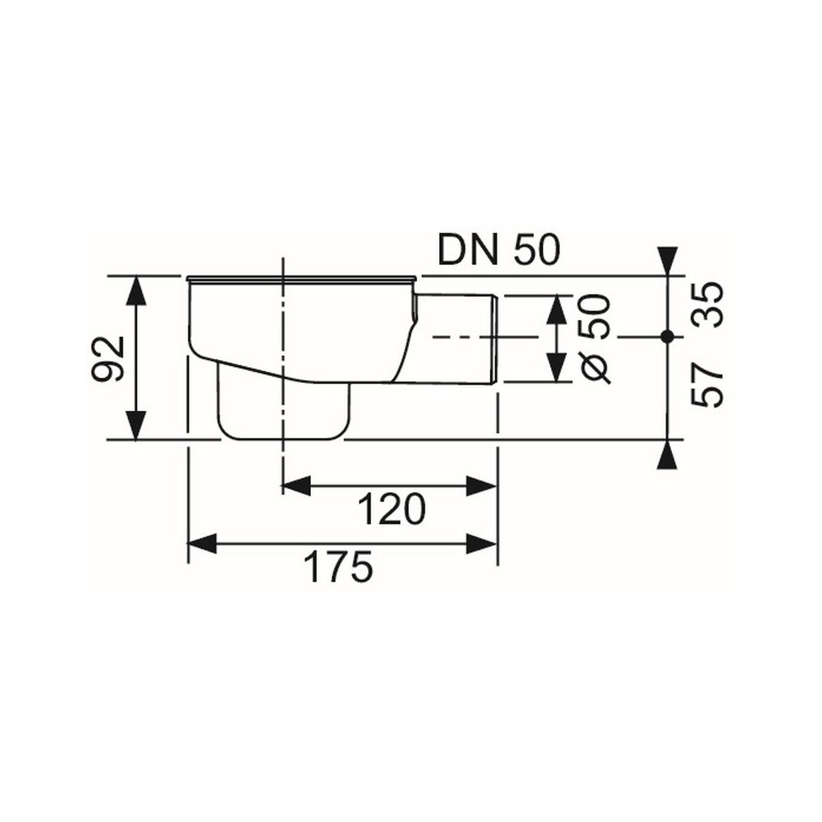 - Einbauhöhe von der Unterkante des Abflusses bis zur Oberkante der Ablaufrinne = 115 mm