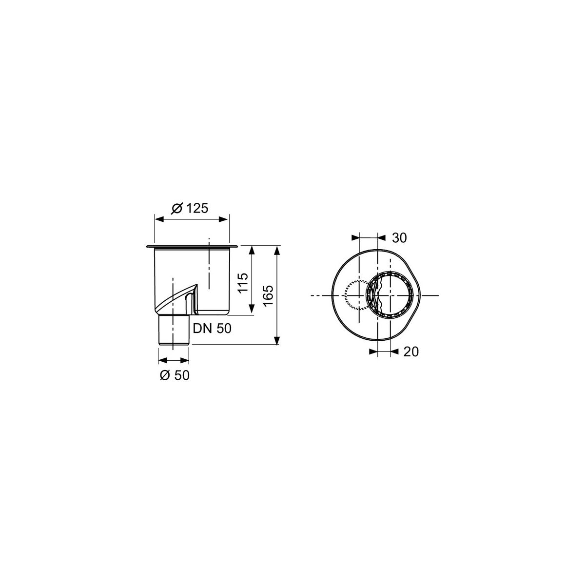 - Vertikales Abflussbogenstück für TECEdrainline-Duschrinne zur schwenkbaren Montage am Rinnenkörper, für den vertikalen Anschluss an einen DN50-Abfluss mit herausnehmbarem Siphon-Steigrohr