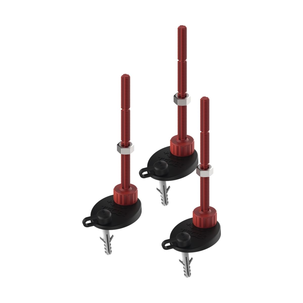 - Einstellbereich 95–194 mm oder 65–164 mm (von der Unterkante des Fußes bis zur Oberkante des Abflusses bzw. der Oberkante des Estrichs – ohne Fliesen)
