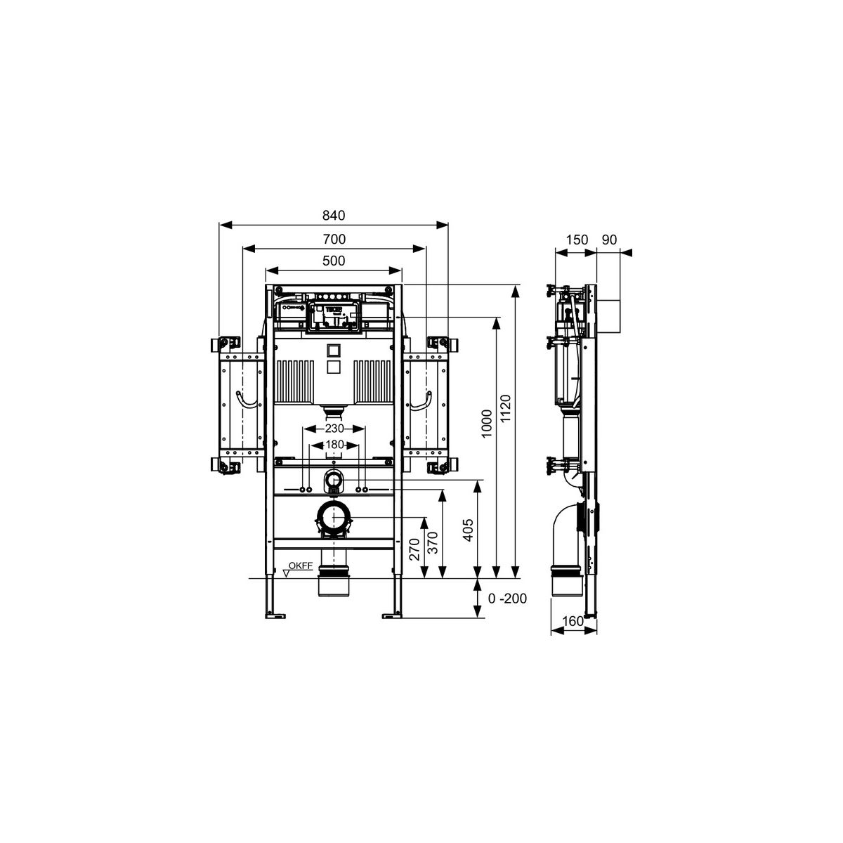 Bei Verwendung von WC-Keramiken mit reduzierter Auflagefläche (= Abstand zwischen Befestigungsbolzen und Unterkante der Auflagefläche nicht größer als 18 cm) – z. B.: V & B Memento, Subway 2.0 – ist die Montage von Stahlstützen Kat.-Nr. 9041029 im unteren Bereich der Unterbaukonstruktion erforderlich. Je nach Hersteller ist bei einigen Klappgriffen eine verdeckte Verkabelung möglicherweise nicht möglich.