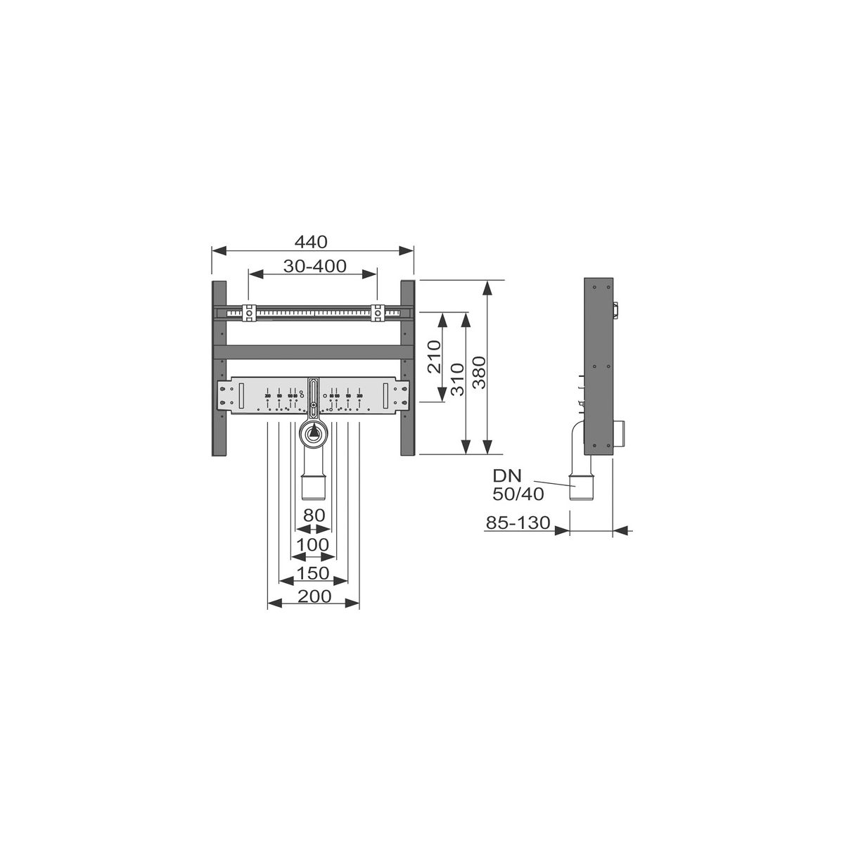 - zwei Befestigungsstifte für Keramik mit Muttern M 10 (Einstellbereich von 30-400 mm)