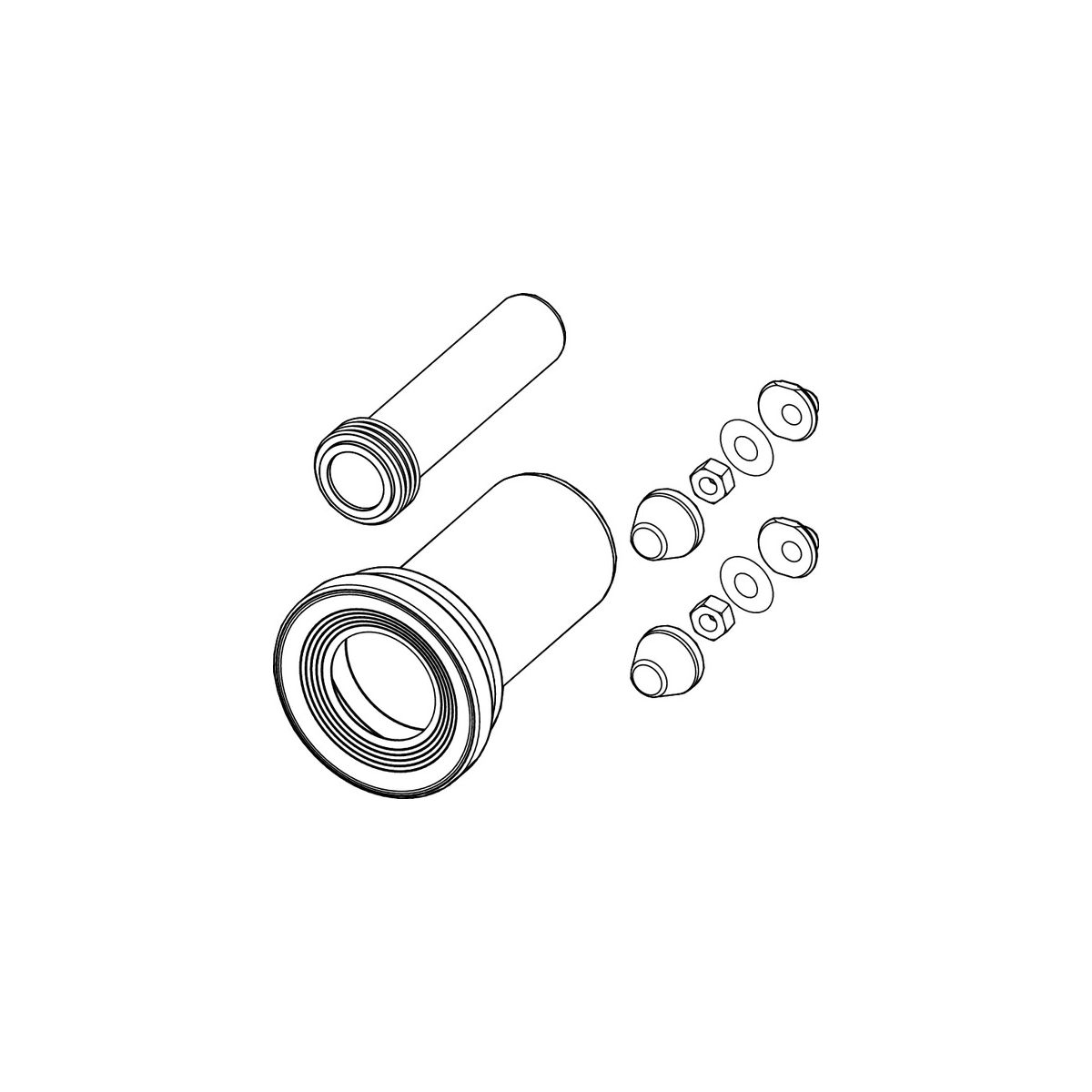 Satz Anschlussstutzen mit Unterlegscheiben und Abdeckelementen für Wandkeramik.
