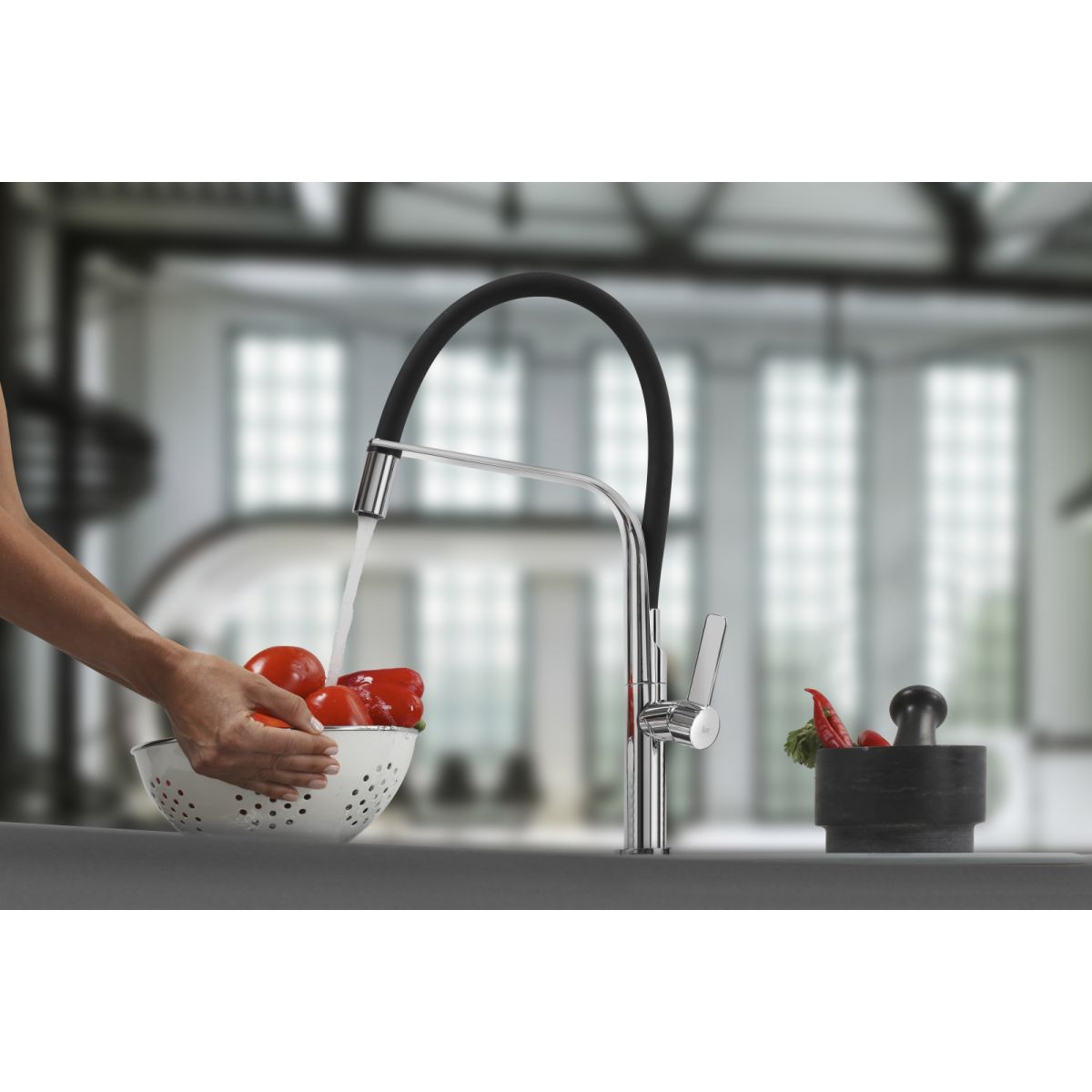 - beweglicher, flexibler Auslauf, um 360º drehbar