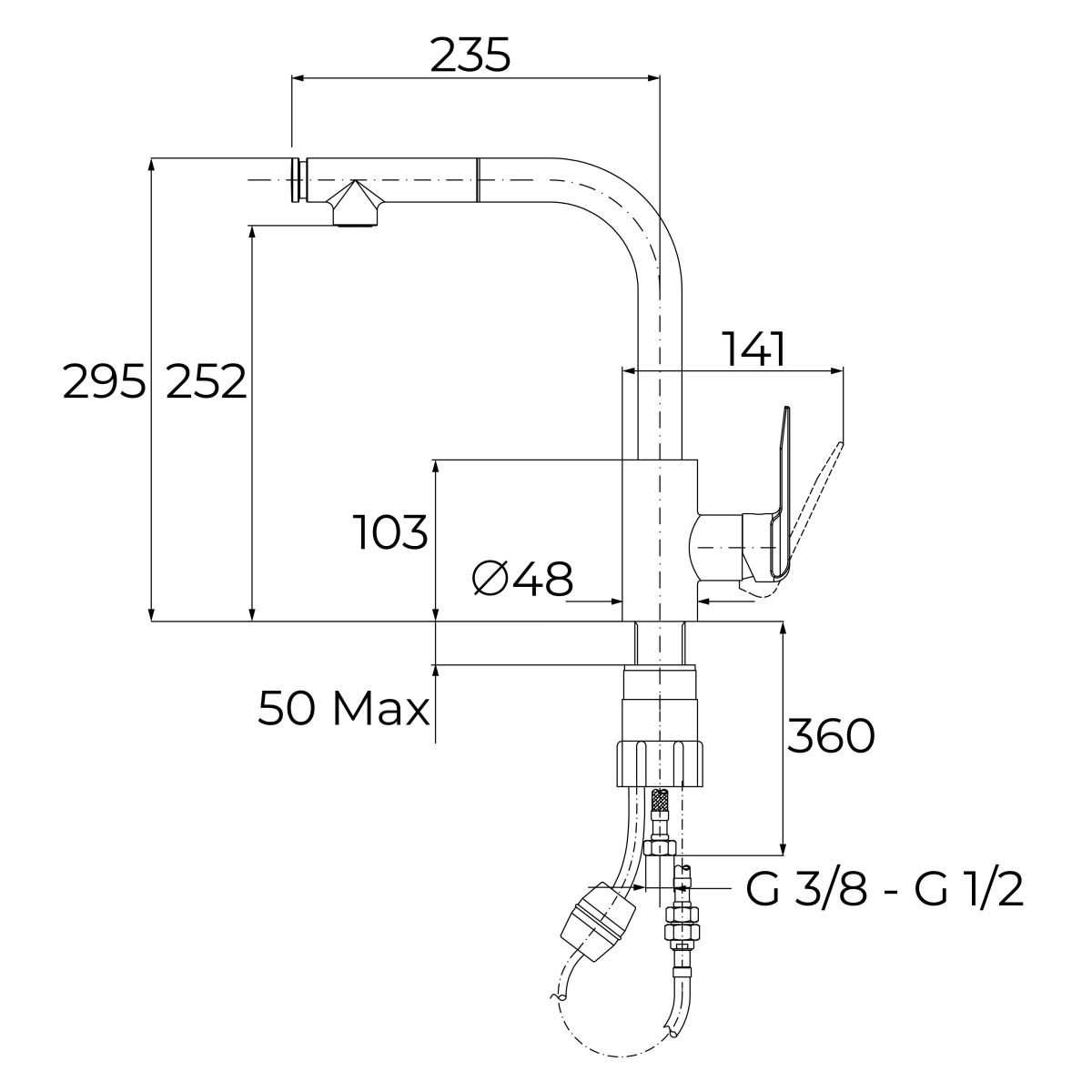 - Mischbatterie mit ausziehbarem Auslauf und variabler Wasserstrahlstärke
