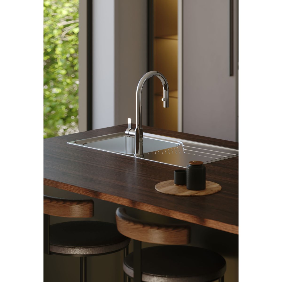 - Küchenarmatur mit ausziehbarem Auslauf und variabler Strahlart