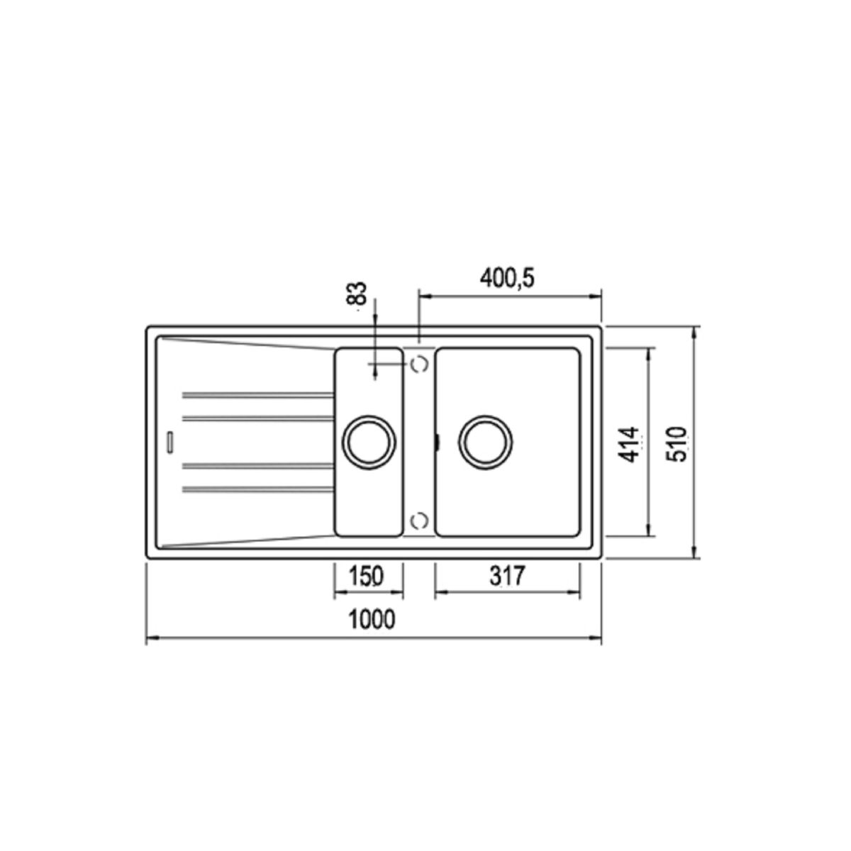 - Spülbecken wird ohne Löcher geliefert; Löcher müssen selbst gebohrt werden; bis zu 2 Löcher können gebohrt werden
