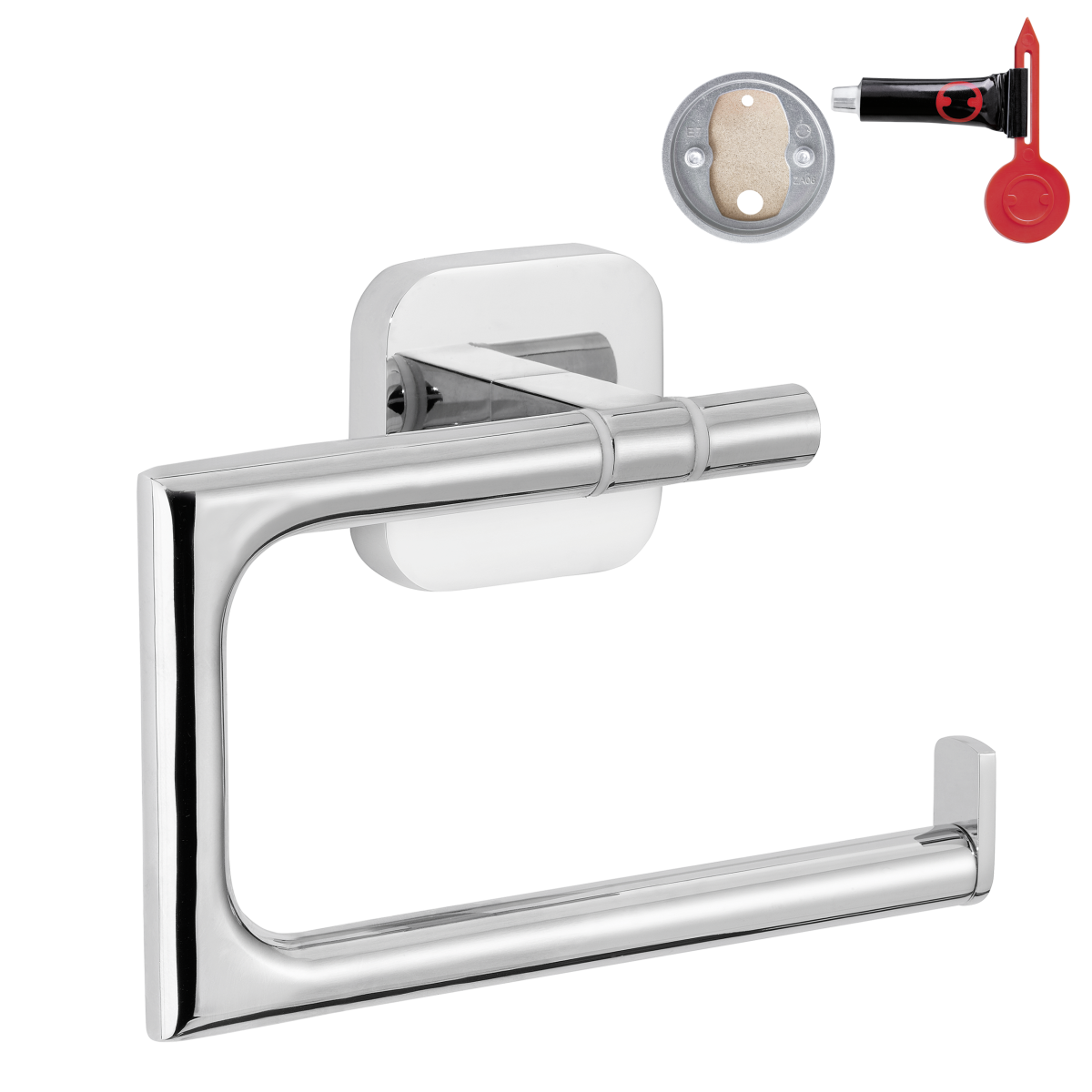 Hergestellt aus hochglanzverchromtem Metall, wasserfest und rostfrei, daher äußerst langlebig. Die Montage dieses Zubehörs basiert auf einer patentierten Selbstklebetechnologie – Adapter + Klebemasse. Eine Bohrmaschine ist nicht erforderlich. Dadurch bleiben Wand- oder Fliesenoberflächen unbeschädigt. Der Halter kann jederzeit schnell und rückstandslos demontiert und dann mit einem neuen Adapter BK20 an einer anderen Stelle montiert werden.