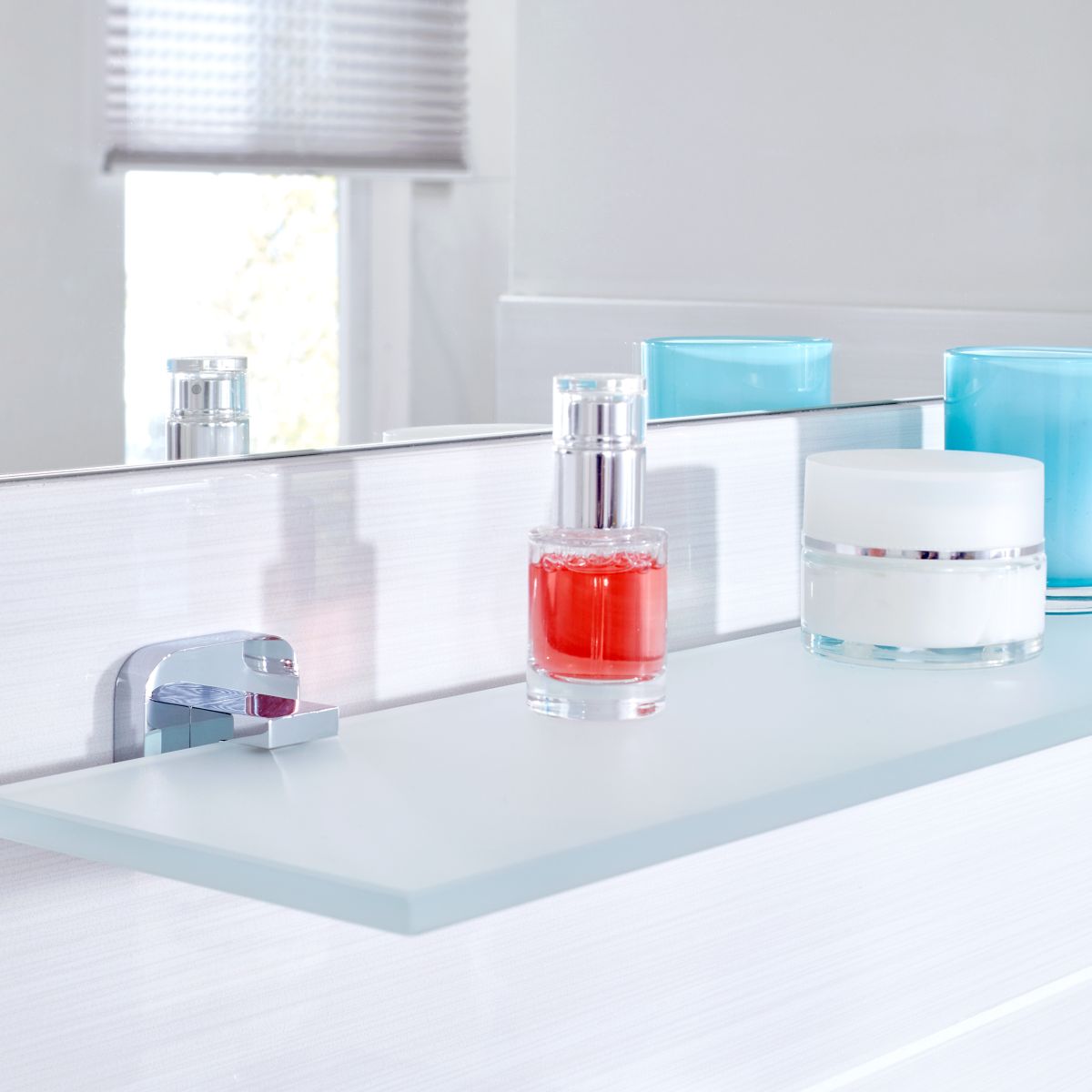 Selbstklebende Glasablage tesa® Elegaant, hochglanzverchromt.