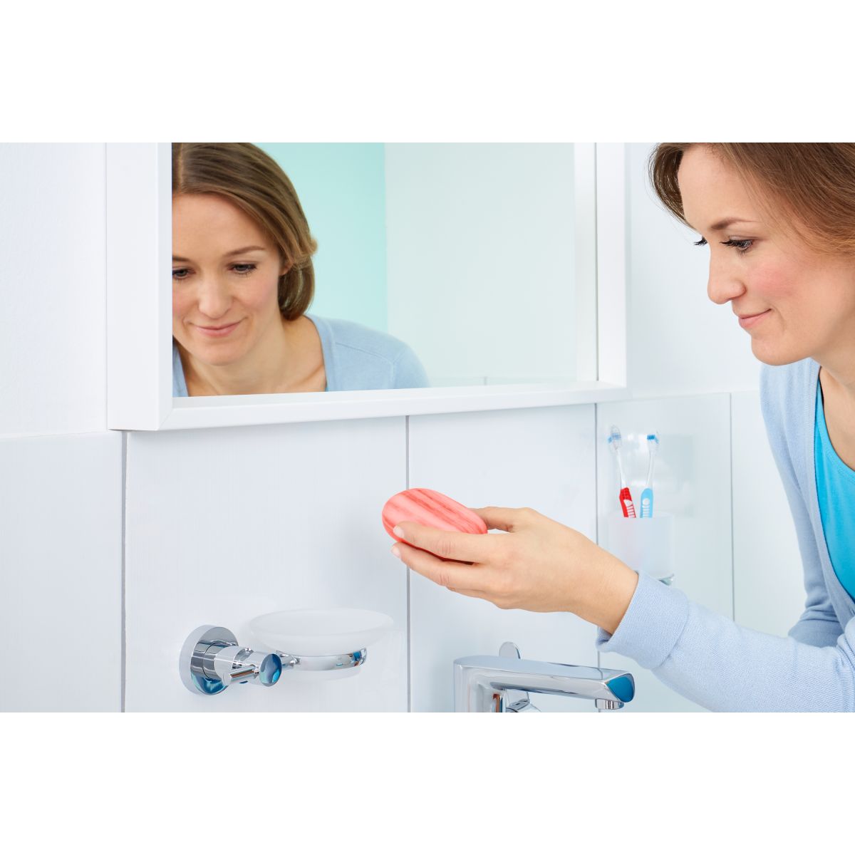 Selbstklebende Seifenschale tesa® Loxx, hochglanzverchromt.