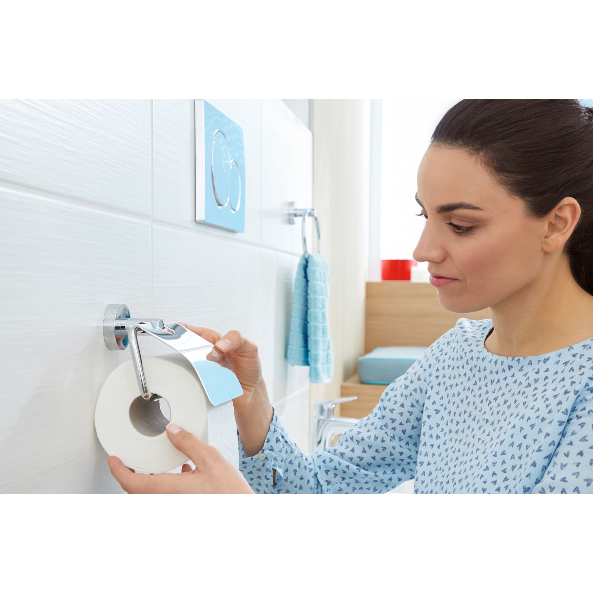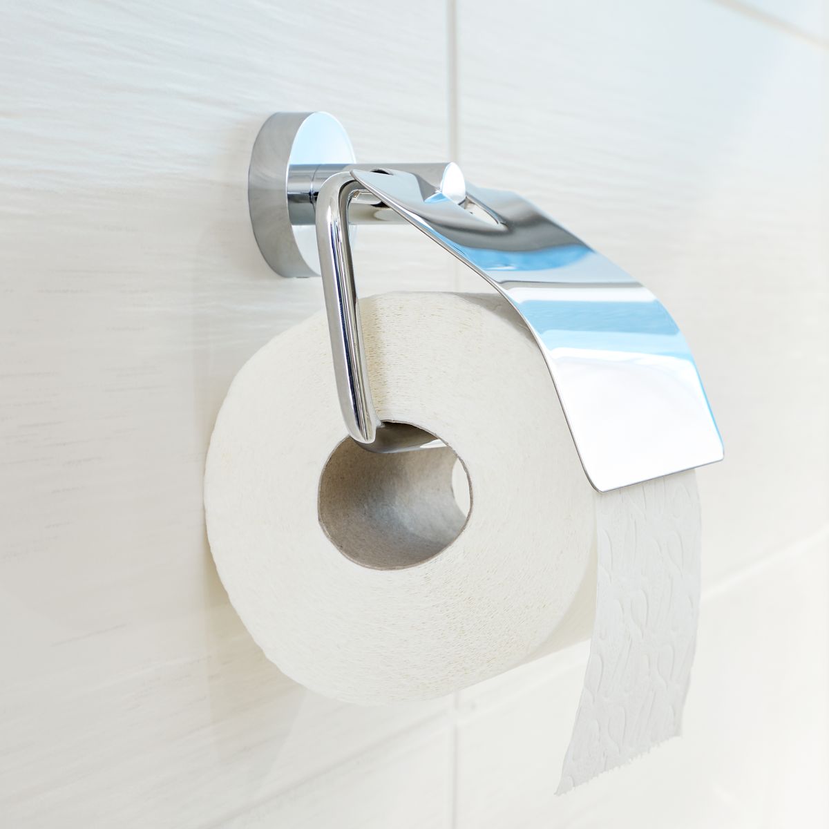 Selbstklebender Toilettenpapierhalter mit Abdeckung tesa® Smooz, hochglanzverchromt.