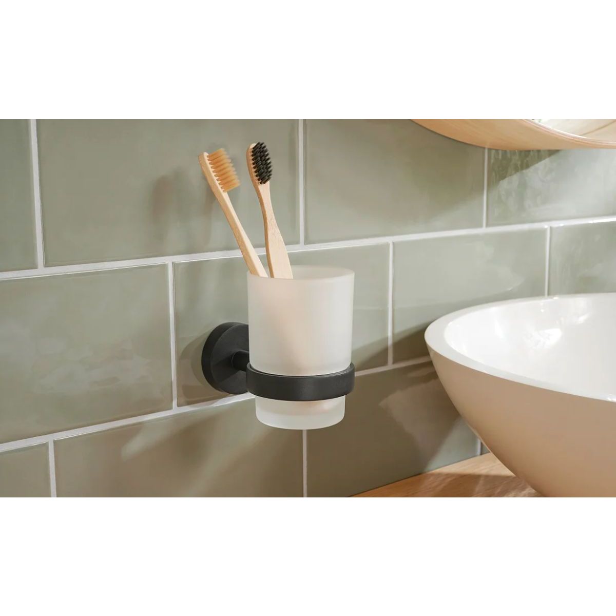 - Halter mit Becher für Zahnbürsten, mit tesa® Power.Kit-Technologie (selbstklebende Befestigungslösung ohne Bohren)