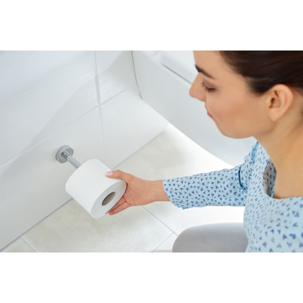 Die Montage dieses Zubehörs an der Wand ist ganz einfach, und sein minimalistisches Design passt zu jedem Badezimmerstil. Es ist immer gut, eine Ersatzrolle Toilettenpapier griffbereit zu haben. Finden Sie einfach den besten Platz dafür und befestigen Sie dort den tesa® Smooz Halter – ohne Bohren, Lärm und Staub. Die patentierte Befestigungstechnologie (mit Adapter und Klebemasse) sorgt für einen stabilen Halt auf den meisten Oberflächen im Badezimmer. Fliesen oder Wände werden nicht beschädigt und der Halter kann rückstandslos entfernt werden. Mit dem neuen Adapter BK20 kann er auch an einer anderen Stelle wieder befestigt werden. Abmessungen – 50 x 50 x 125 [mm]