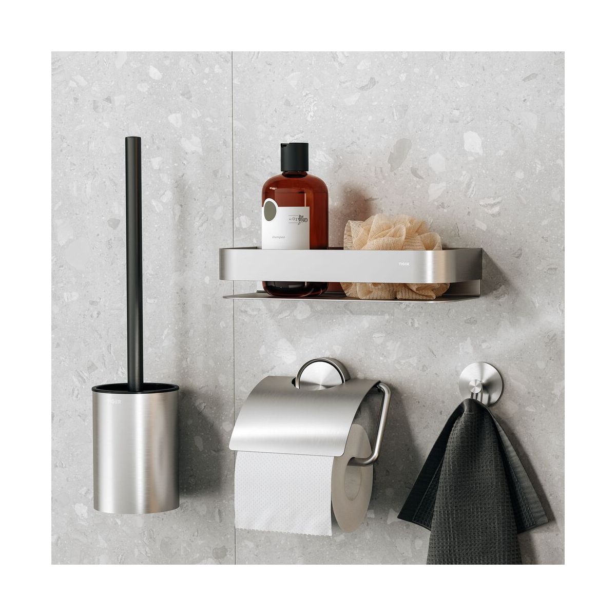 Weniger ist mehr. Dieser Toilettenpapierhalter Ace aus gebürstetem Edelstahl mit Abdeckung von Tiger beweist es. Die runde Form ist ein echter Blickfang. Schlicht und stilvoll, passend zu modernen Trends. Dank des selbstklebenden 3M-Klebebands lässt sich der Halter leicht an jeder glatten Oberfläche befestigen. Die Abdeckung lässt sich leicht abnehmen, um den Halter anschließend mit Schrauben zu befestigen. Praktisch, nicht wahr?