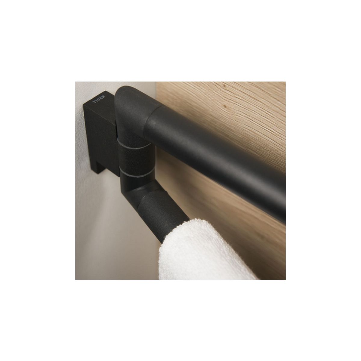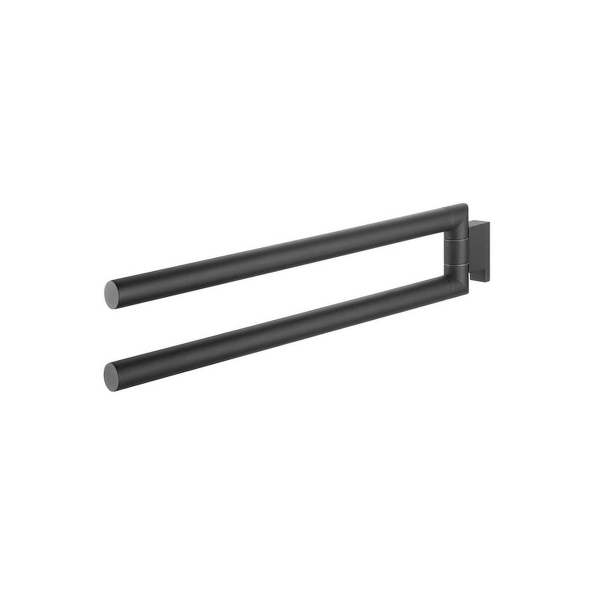 Moderner Doppelhandtuchhalter mit verstellbarem Abstand zwischen den Stangen. Die Stangen sind 46,2 cm lang. Der hier angebotene Handtuchhalter ist in einem geschmackvollen und zeitlosen Schwarz erhältlich.