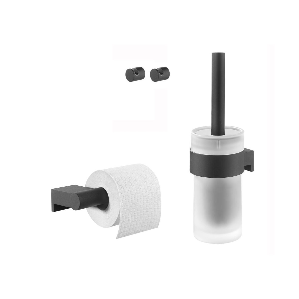 - Komplettes Set: Handtuchhaken, Toilettenpapierhalter ohne Abdeckung und hängende Toilettenbürste