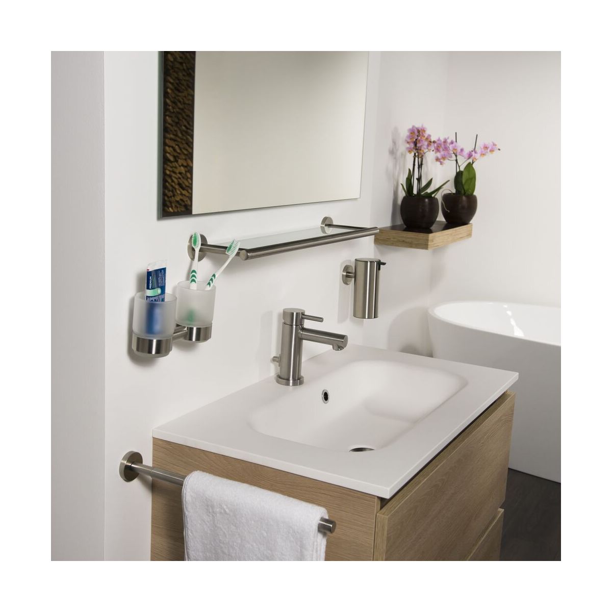 Dieses Produkt kann auch mit TigerFix Typ 1 montiert werden, einem patentierten Klebesystem, mit dem sich Accessoires schnell und einfach auf glatten, harten Oberflächen befestigen lassen. Sie müssen nicht bohren und können die Accessoires leicht wieder entfernen, ohne Spuren auf der Montagefläche zu hinterlassen. TigerFix ist separat erhältlich.