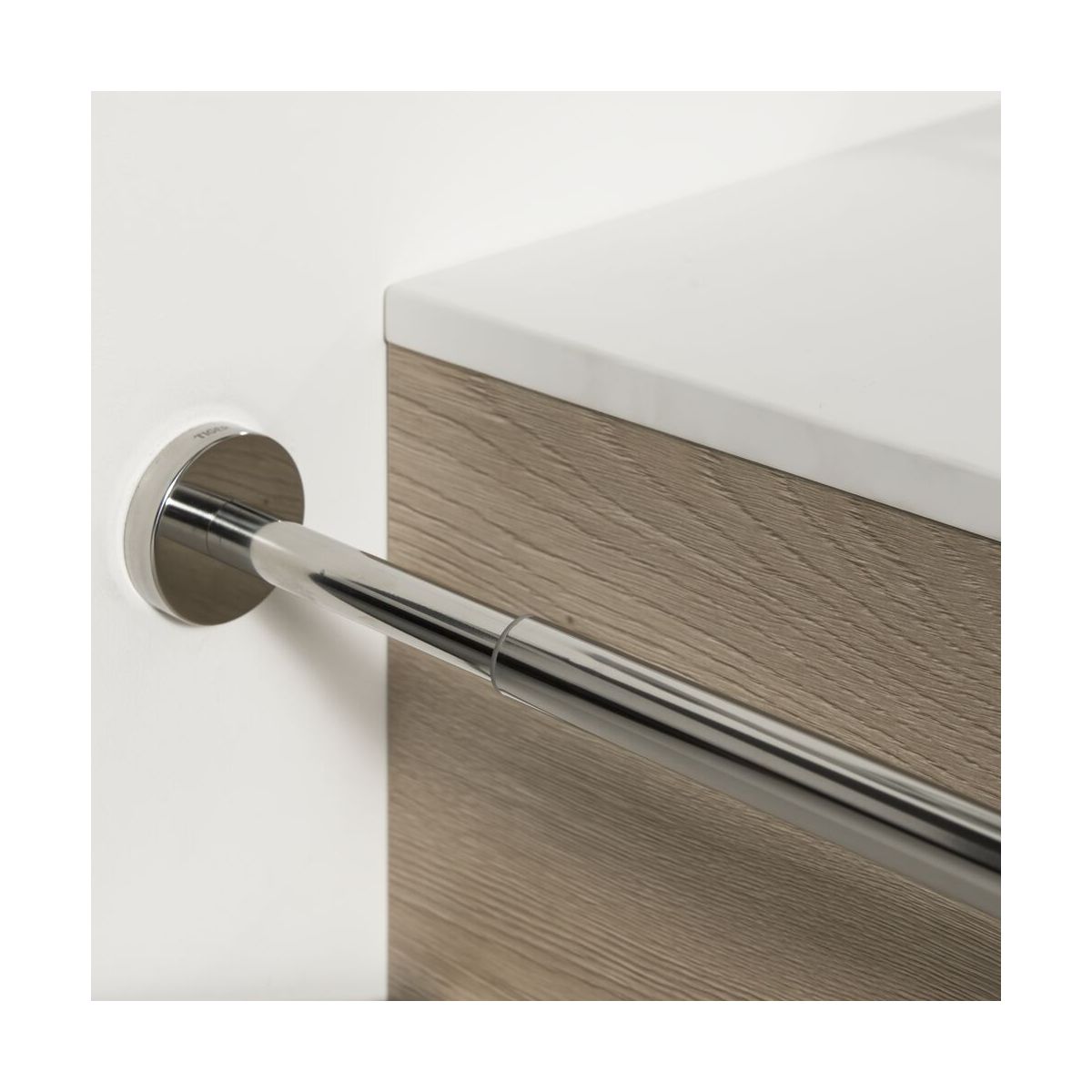 Der Teleskop-Handtuchhalter Tiger Boston aus Edelstahl mit polierter Oberfläche kann auf bis zu 60 cm verlängert werden. Dieser Handtuchhalter für ein Handtuch lässt sich leicht an der Wand befestigen, und die verdeckten Befestigungselemente (im Lieferumfang enthalten) sorgen für ein elegantes Erscheinungsbild. Der senkrecht zur Wand verlaufende Haken ist ideal, um Platz neben dem Waschbecken zu sparen. Die Serie Boston umfasst eine große Auswahl an weiteren Accessoires für Bad und Toilette, die ein harmonisches Gesamtbild ergeben.