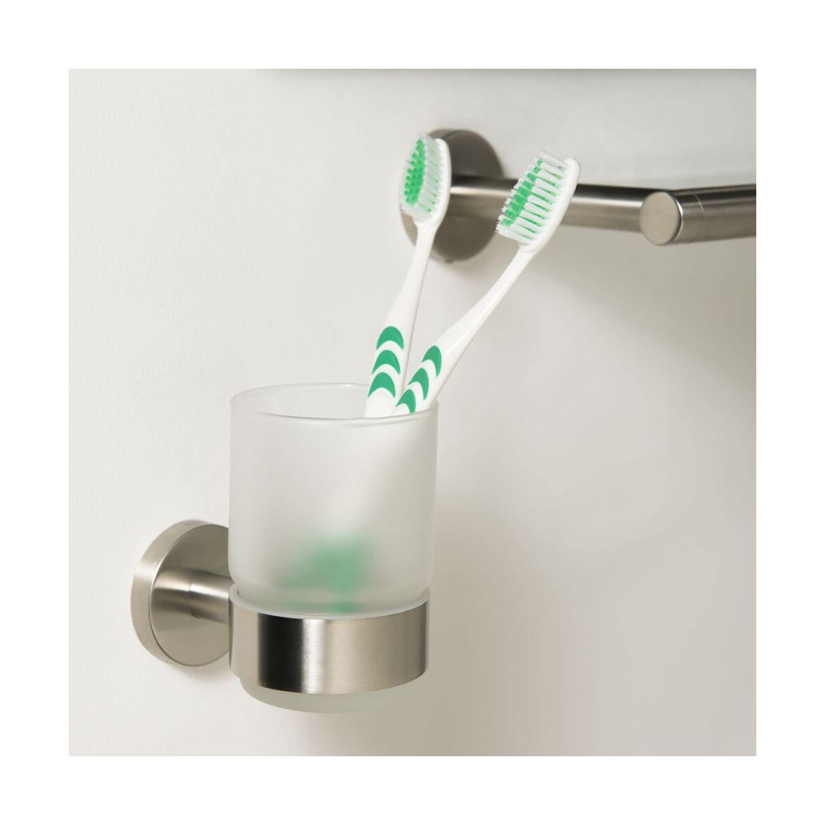 Der Becher mit Halterung Tiger Boston ist eine schöne Kombination aus gebürstetem Stahl und mattem Glas. Das Produkt lässt sich leicht an der Wand befestigen, und die Befestigungselemente (im Lieferumfang enthalten) sind verdeckt, was dem Ganzen ein stilvolles Aussehen verleiht. Die Serie Boston umfasst eine große Auswahl an weiteren Accessoires für Bad und Toilette, die ein harmonisches Gesamtbild ergeben.
