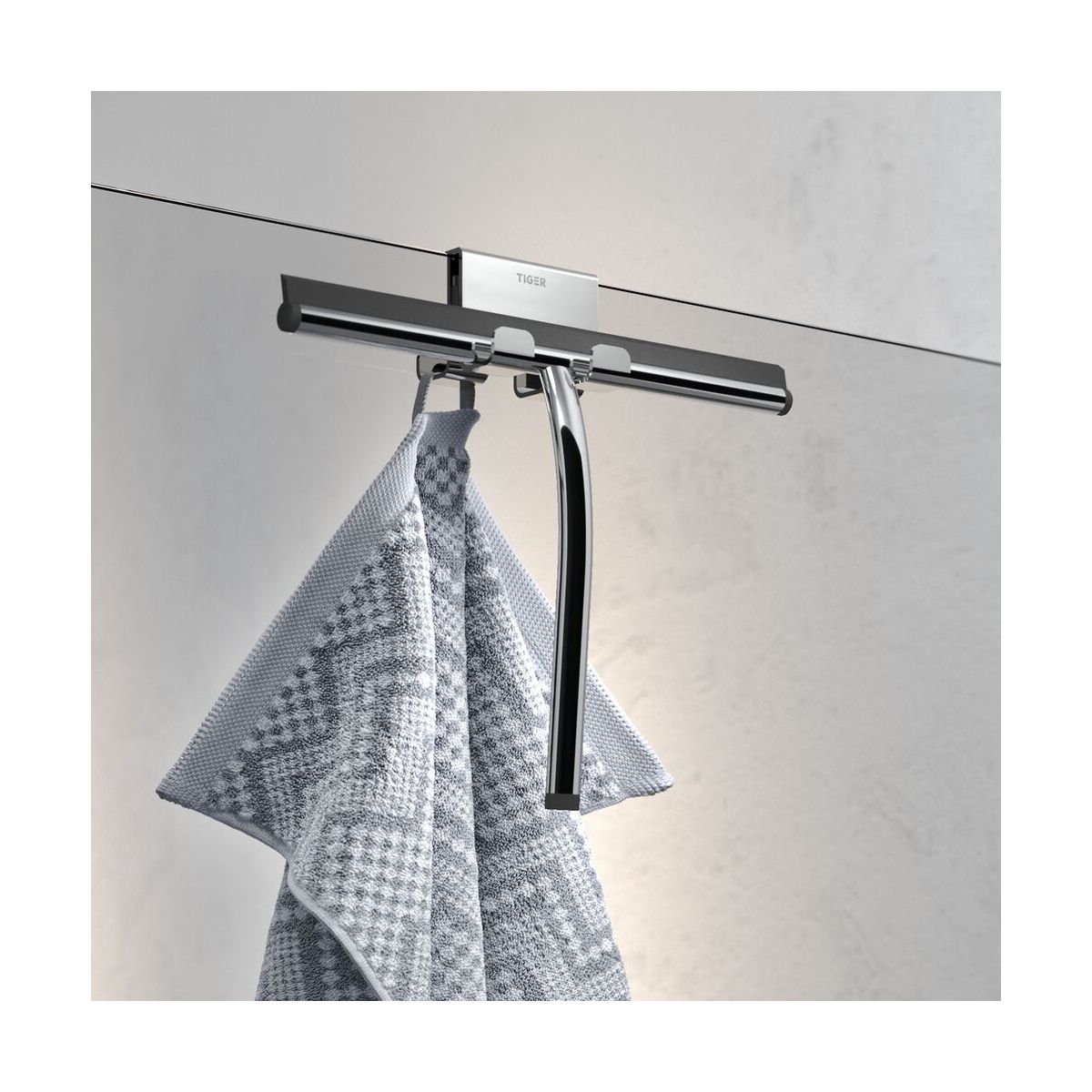 Aufbewahrungslösungen, wir lieben sie. Hängen Sie diesen Doppelhaken an den Rand Ihrer Duschkabine oder Glaswand, um mehr Stauraum in Ihrem Badezimmer zu schaffen. Dank der Silikonbeschichtung bleibt das Glas stets geschützt. Dieser Haken eignet sich zum Aufhängen von Fensterreinigern, Rasierern und Handtüchern. Ob auf der nassen oder trockenen Seite, mit diesem Haken haben Ihre Sachen immer ihren Platz.