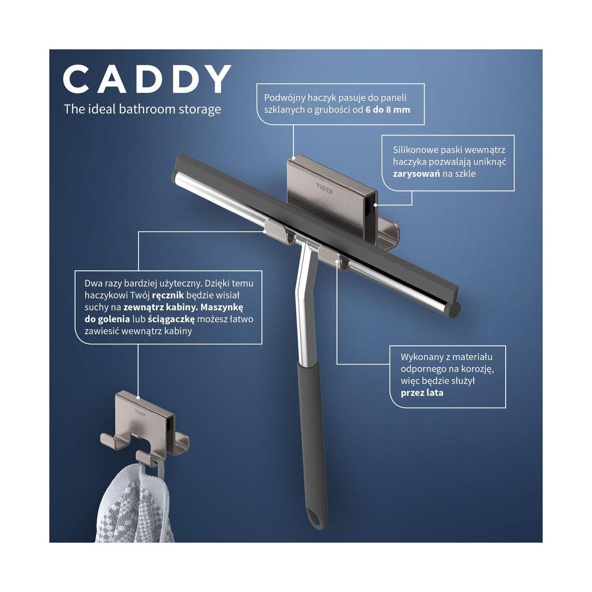 - Teil der Caddy-Serie: Diese Serie umfasst eine große Auswahl an Duschkörben und Haken für jeden Verwendungszweck