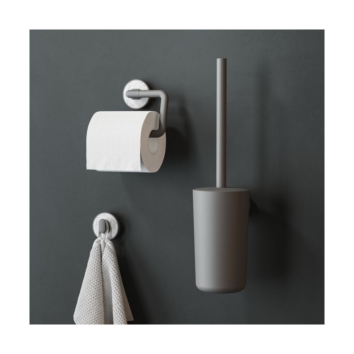 Verleihen Sie Ihrem Badezimmer oder Ihrer Toilette ganz einfach einen luxuriösen Look: Cata macht es möglich. Diese Toilettenbürste und der Behälter in Grau zeichnen sich durch einen dezenten Marmorakzent aus. Die Toilettenbürste ist nicht nur praktisch, sondern auch langlebig. Begrüßen Sie dieses funktionale Stilelement.