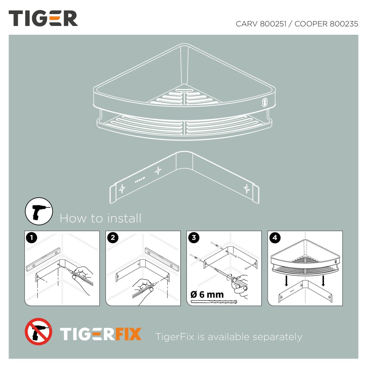 Die Cooper-Accessoires lassen sich ganz einfach mit TigerFix montieren, unserem Lifehack für alle, die keine Löcher in die Wand bohren möchten. Mit TigerFix können Sie unsere Accessoires schnell und einfach auf einer glatten, festen Oberfläche befestigen. TigerFix ist separat erhältlich.