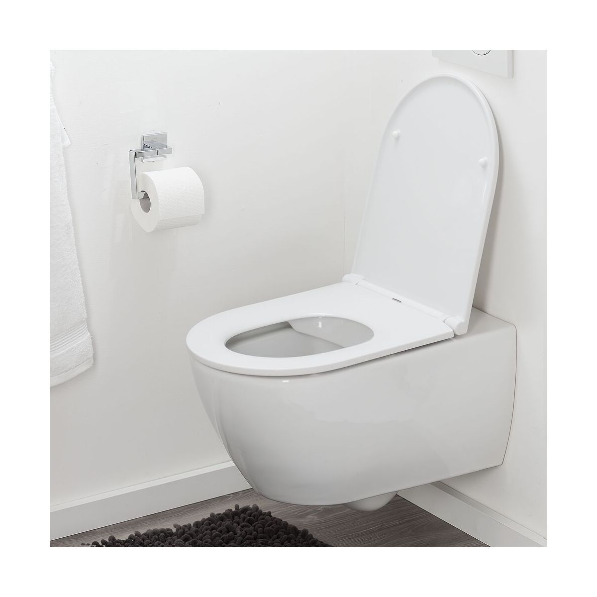 - spezielle Scharniere sorgen für ein sanftes Herunterklappen des Toilettendeckels