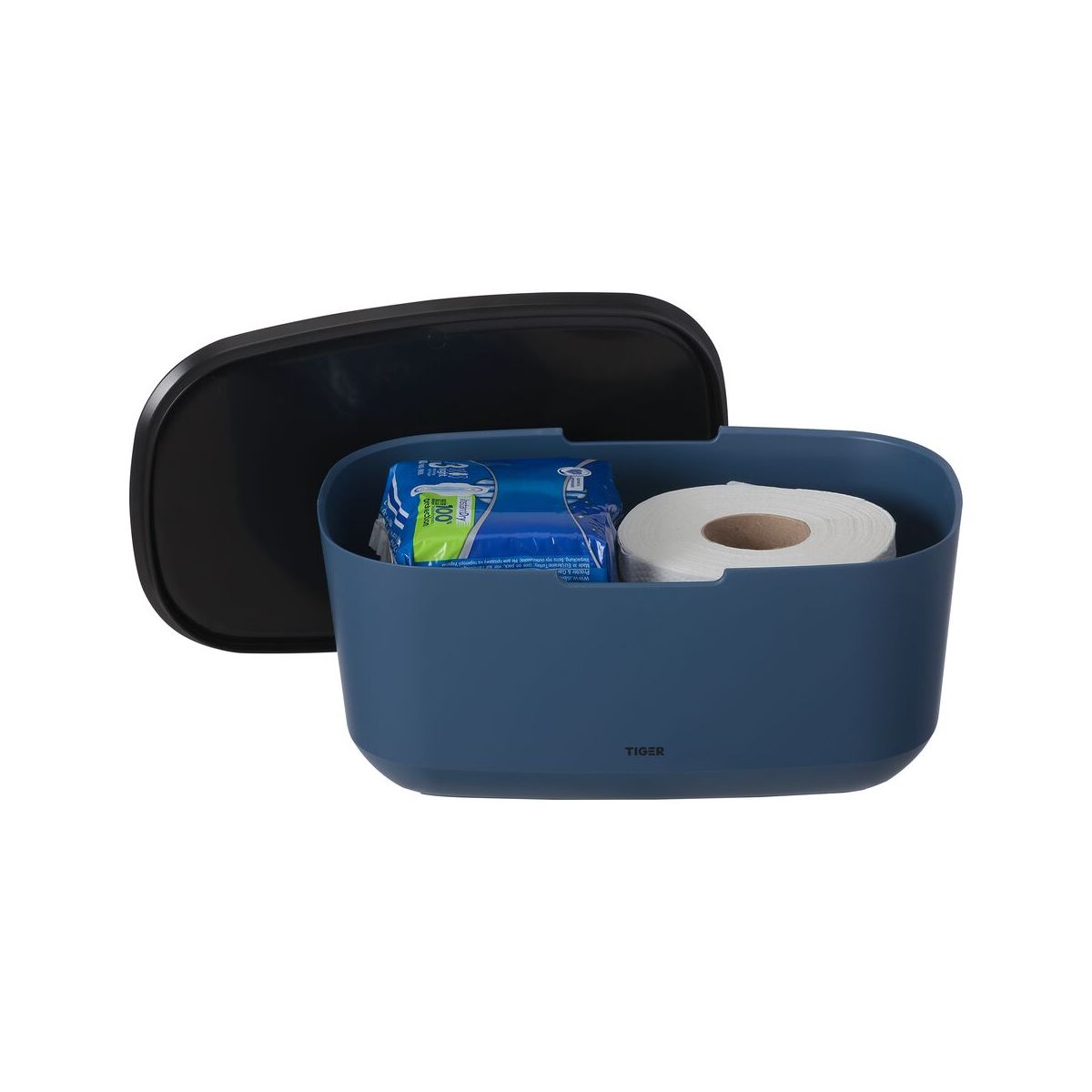 Wir wissen, wie nützlich es ist, Dinge ordentlich und außer Sichtweite aufzubewahren. Der blaue Aufbewahrungsbehälter mit schwarzem Deckel Tiger Tess hilft Ihnen dabei. Dank seiner natürlichen, geschwungenen Formen passt er in jedes Interieur. Der Aufbewahrungsbehälter lässt sich dank des passenden Deckels bequem verschließen.
