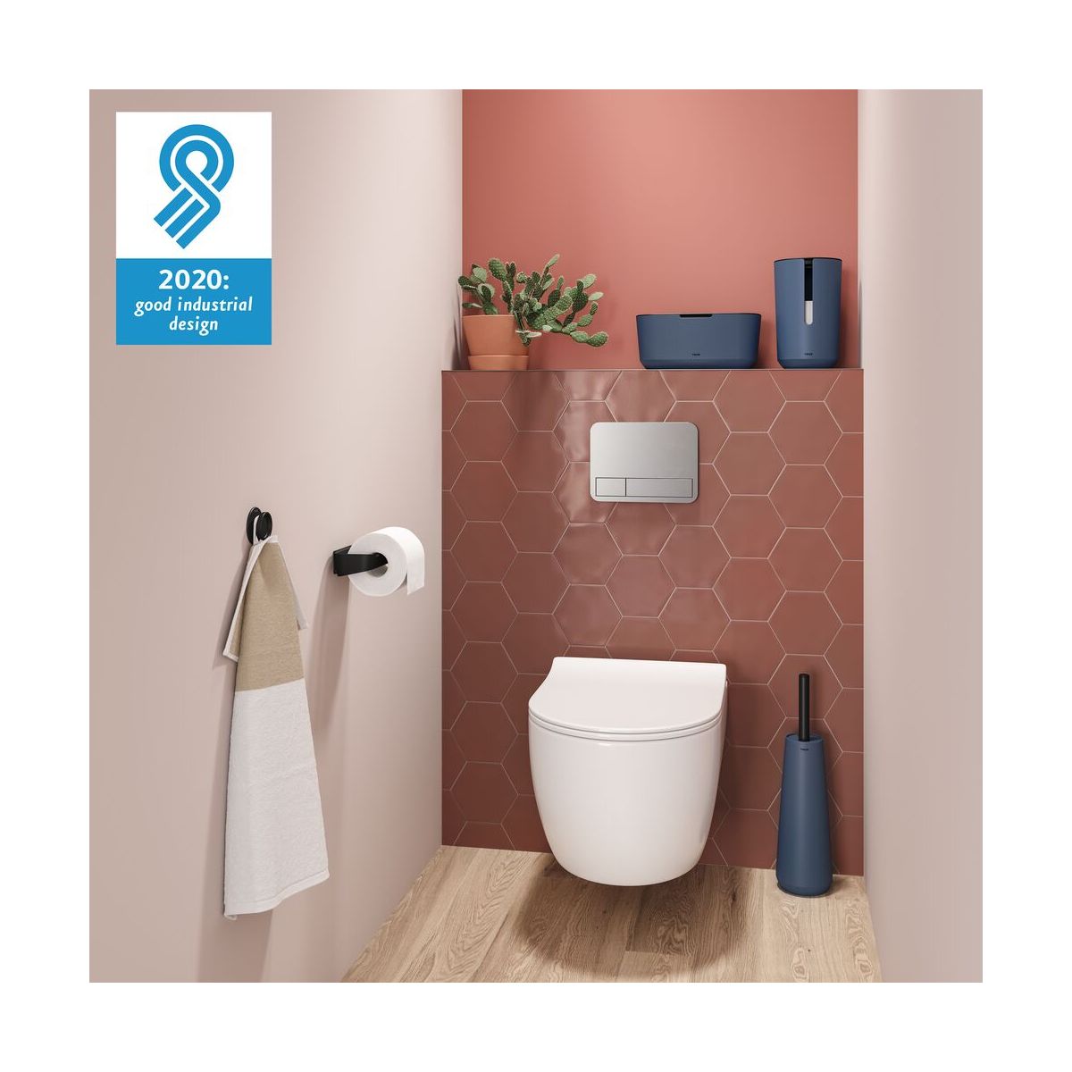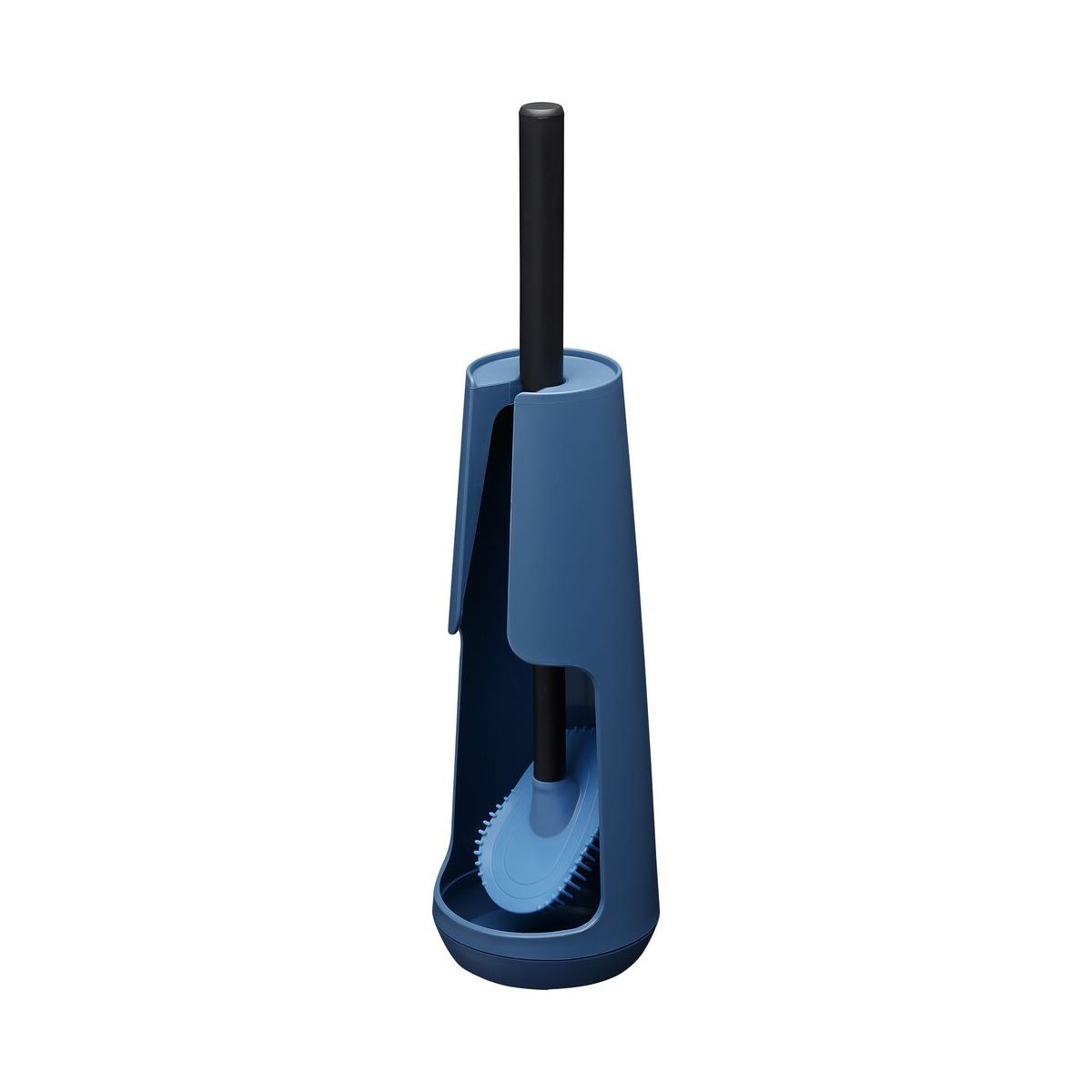 Ein frischer, moderner Blick auf die Toilette oder das Badezimmer dank des blauen Toilettenbürstenbehälters Tiger Tess. Der freistehende Behälter enthält die neue flexible Toilettenbürste Swoop®. Mit dem innovativen Bürstenkopf lassen sich schwer zugängliche Stellen mühelos reinigen, und dank ihrer Form und dem speziellen Material hinterlässt die Bürste keine Rückstände und tropft praktisch nicht, wenn Sie sie wieder in den Halter stecken. Drehen Sie den Halter um, und die Bürste ist nicht mehr sichtbar.