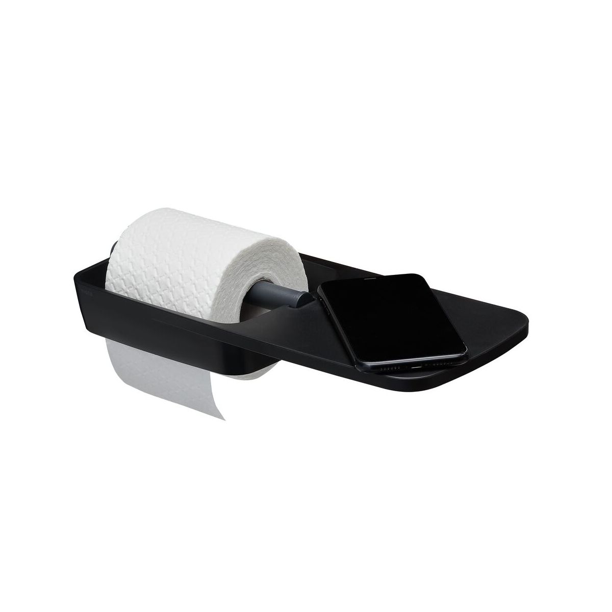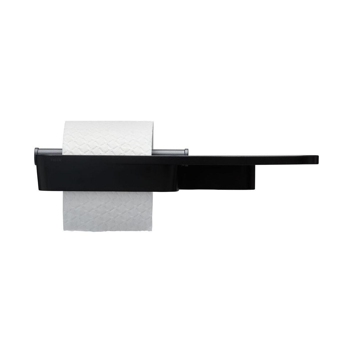 Modernes und funktionales Design. Die subtilen, abgerundeten Formen des schwarzen Toilettenpapierhalters Tiger Tess verleihen Ihrem Badezimmer mehr Ausgewogenheit und Ruhe. Die Ablage bietet zusätzlichen Platz, beispielsweise für Ihr Telefon. Kleben Sie den Halter an die Wand oder befestigen Sie ihn mit Schrauben und Dübeln. Sie entscheiden.