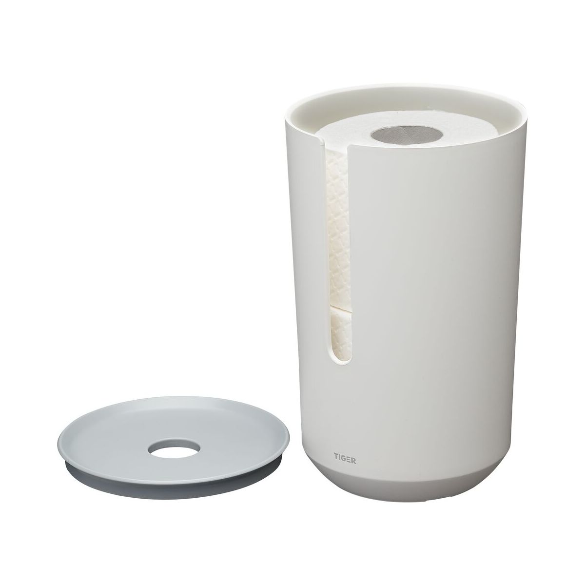 Ordentlich und sauber. Dieser weiße Toilettenpapierhalter mit hellgrauem Deckel von Tiger Tess ist ein Hauch von Modernität und Funktionalität. Die sanften, abgerundeten Formen verleihen ihm ein angenehmes und frisches Aussehen. Einzelne Rollen lassen sich leicht verstauen und der Deckel lässt sich dank der runden Öffnung bequem öffnen. Was das Auge sieht, ist auch gut für das Herz.