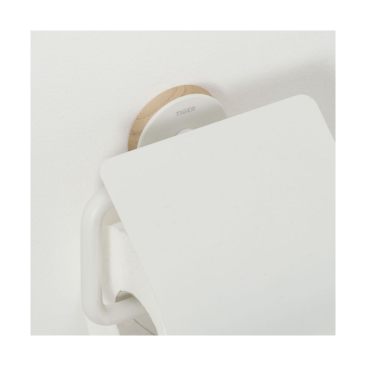 Der Toilettenpapierhalter mit Klappe in der Ausführung Tiger Urban ist in mattem Weiß gehalten und mit zwei Zierringen versehen. Diese Ringe in den Farbtönen Hell-Eiche und Grau sorgen nach der Montage für einen dezenten Akzent. Der Halter kann auch ohne Ring montiert werden, wodurch die Anpassung an die Raumgestaltung unglaublich einfach wird. Der Halter lässt sich leicht an der Wand befestigen, und die Befestigungselemente (im Lieferumfang enthalten) sind verdeckt, was dem Ganzen ein stilvolles Aussehen verleiht. Die Serie Tiger Urban umfasst eine große Auswahl an weiteren Accessoires für Bad und Toilette, die ein harmonisches Gesamtbild ergeben.