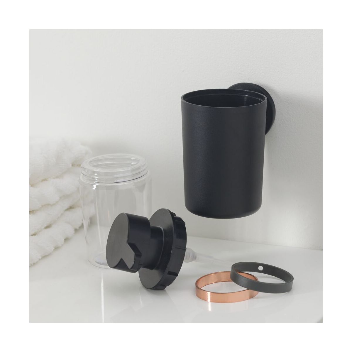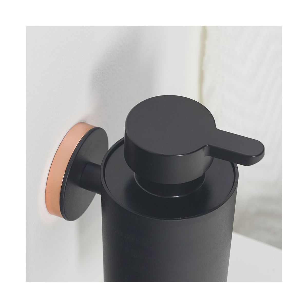 Der Seifenspender Tiger Urban in mattem Schwarz ist mit zwei dekorativen Ringen ausgestattet. Diese Ringe in Kupfer- und Grautönen setzen nach der Montage einen dezenten Akzent in Ihrem Badezimmer. Der Spender kann auch ohne Ring montiert werden, wodurch die Anpassung an die Raumgestaltung unglaublich einfach wird. Der Spender wird an einer Wandplatte montiert, wobei die Befestigungselemente (im Lieferumfang enthalten) verdeckt sind, was dem Ganzen ein stilvolles Aussehen verleiht. Die Serie Tiger Urban umfasst eine große Auswahl an weiteren Accessoires für Bad und Toilette. Ein wunderschön aufeinander abgestimmtes Gesamtbild.