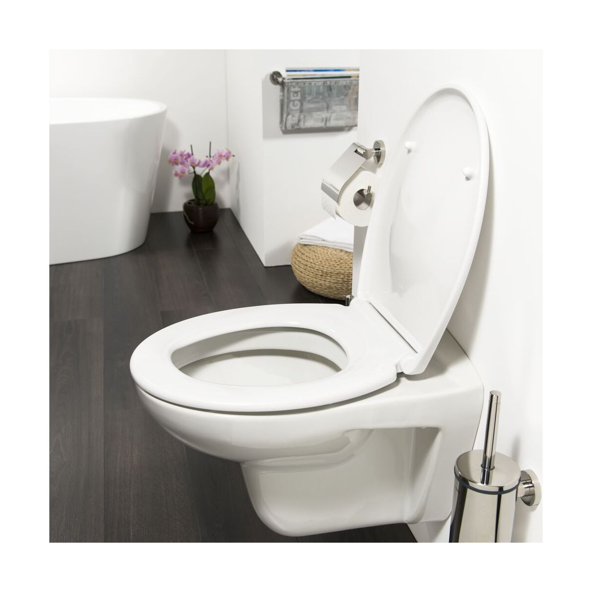 - spezielle Scharniere sorgen für ein sanftes Herunterklappen des Toilettendeckels