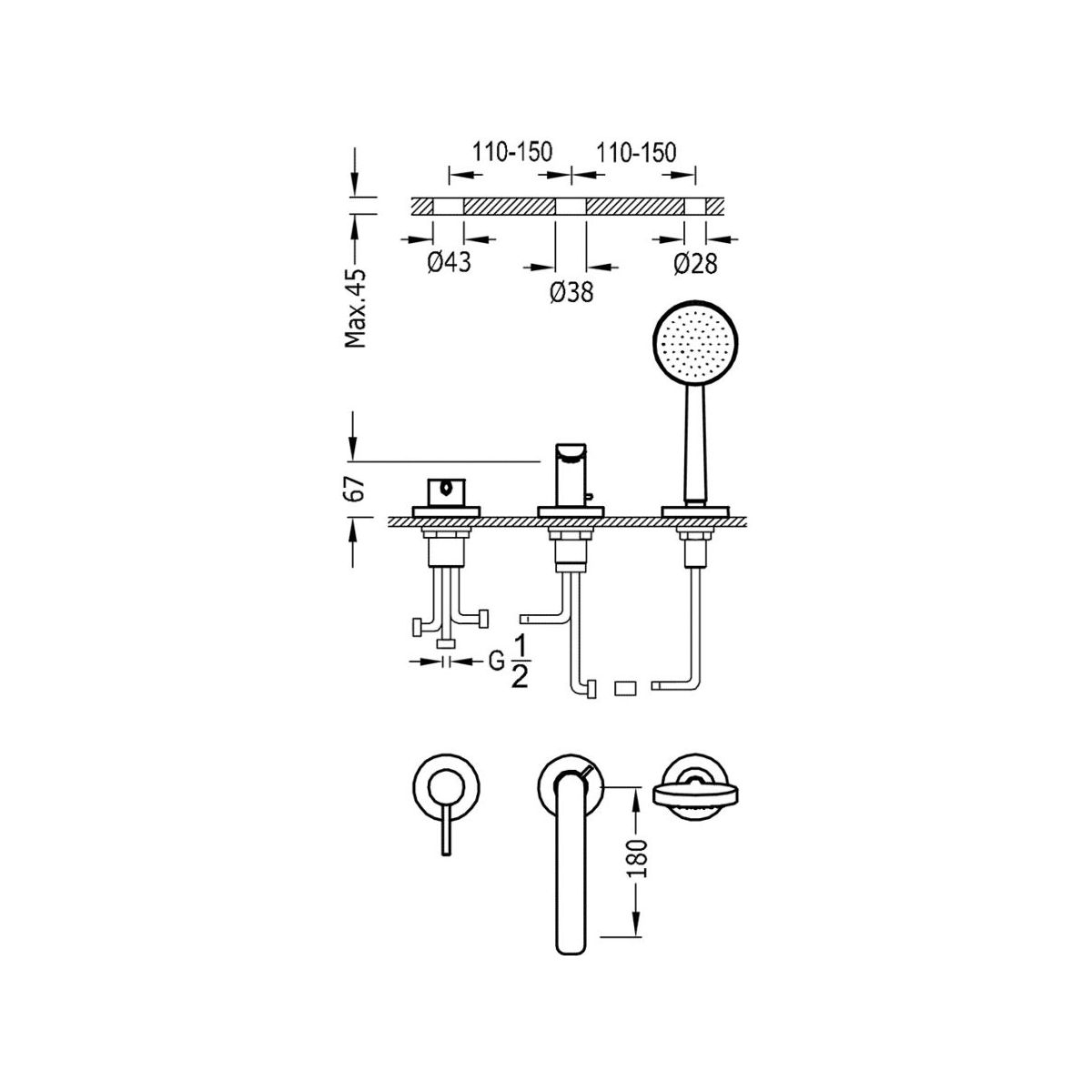 Tres Alplus Badewannen- und Duscharmatur awannenmontiert chrom 203.161.02