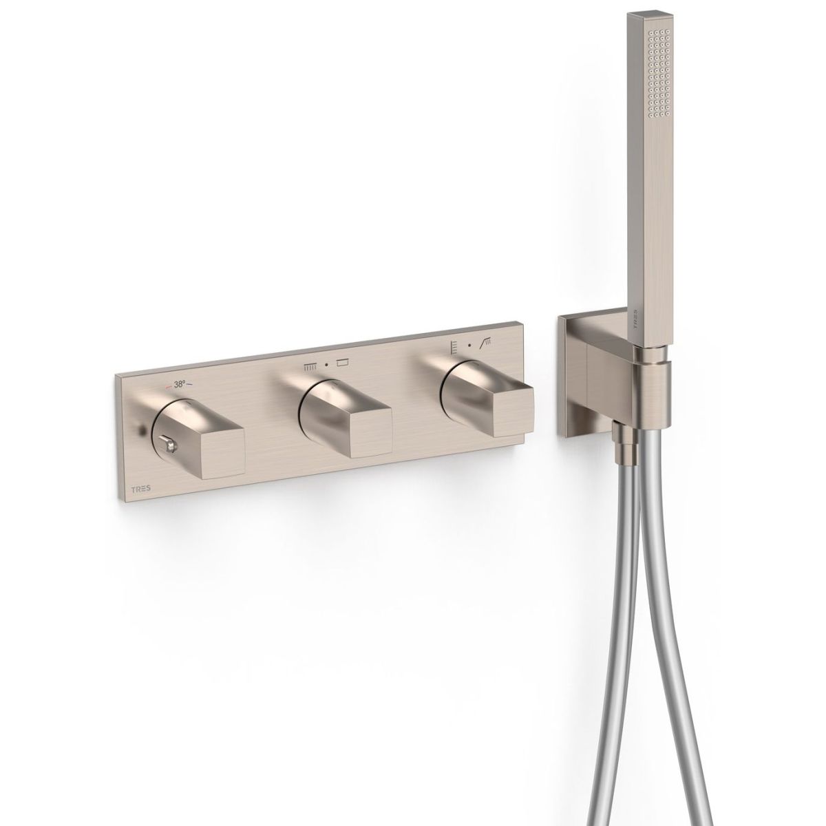 - Tres Instant 77® Thermostat-Kopf, der trotz Druck- oder Temperaturschwankungen einen konstanten Wasserstrahl und die gewünschte Temperatur garantiert