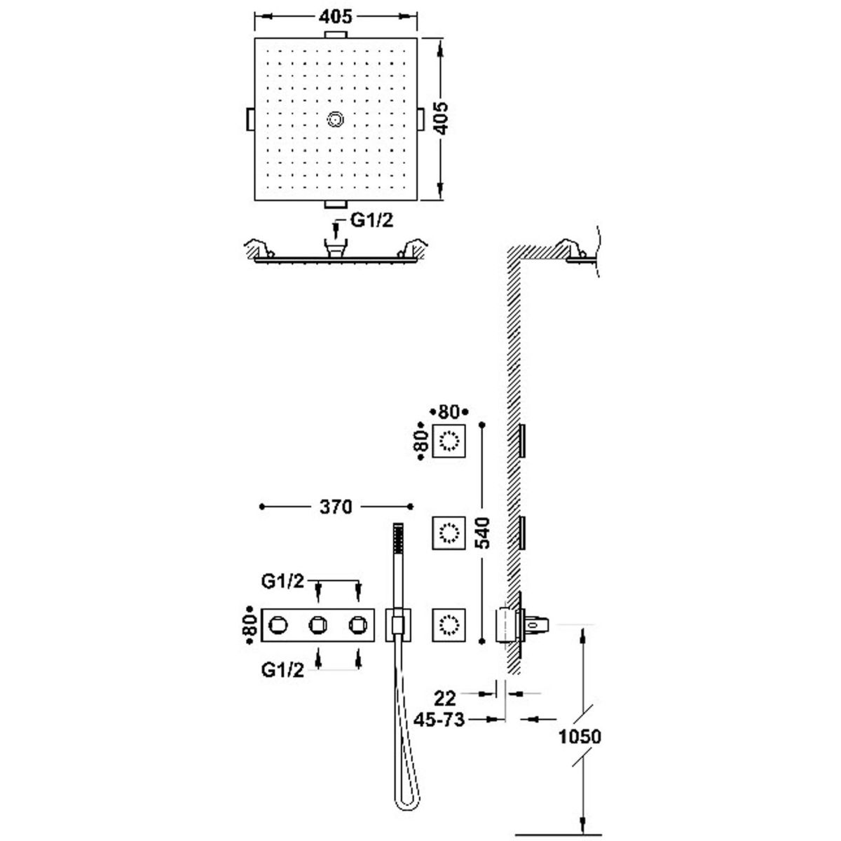 - Abmessungen der Dusche: 40,5 x 40,5 cm