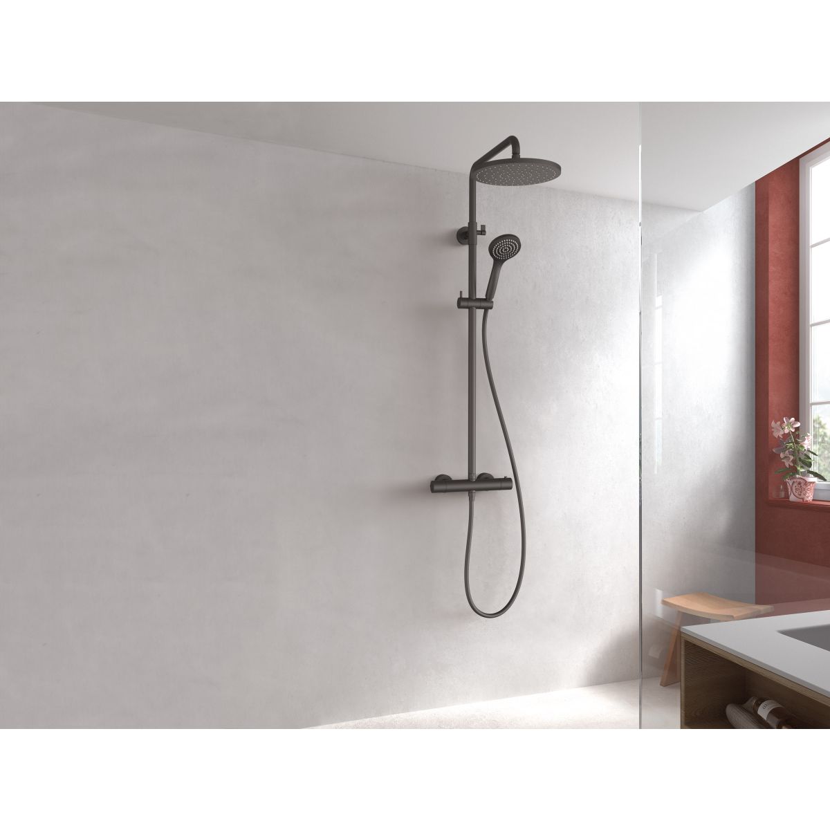 Tres Base Duschset Wandmontage mit Thermostat mit Regenbrause schwarz 21639502NM