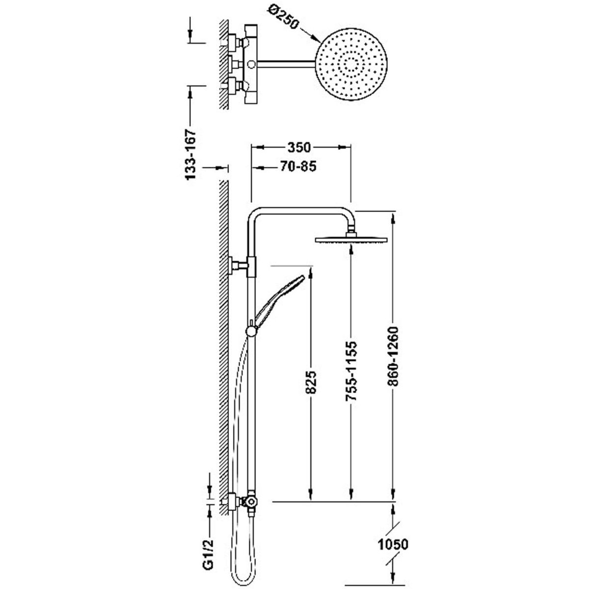 - Schwenkbare Regendusche: Ø 250 mm