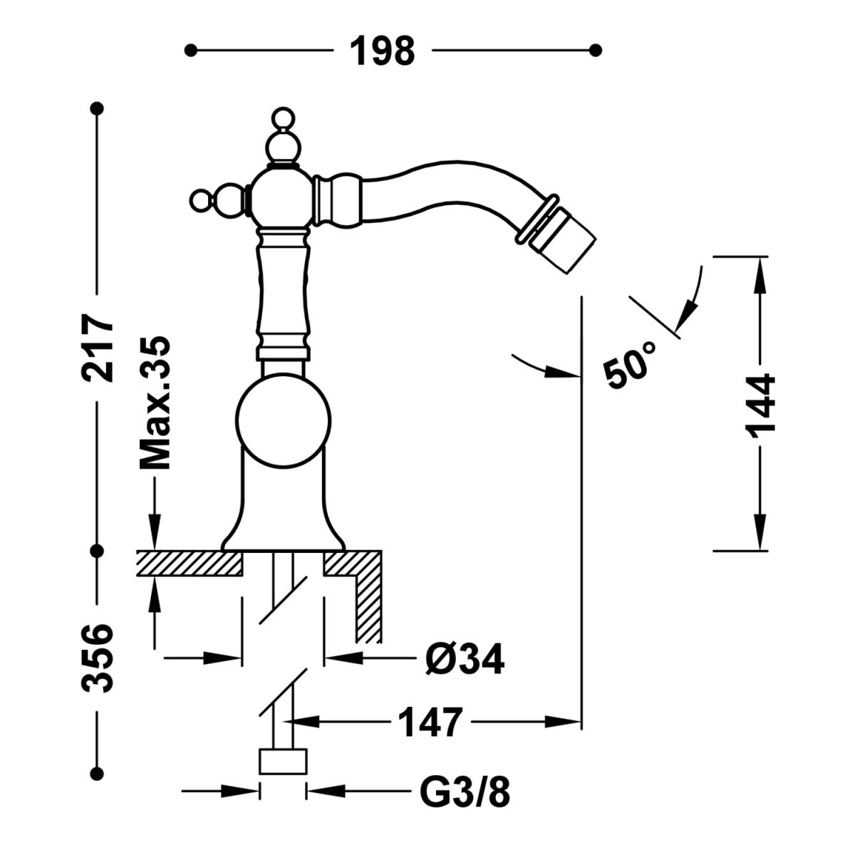 Tres Clasic Bidet-Wasserhahn stehend stahl 24222001AC