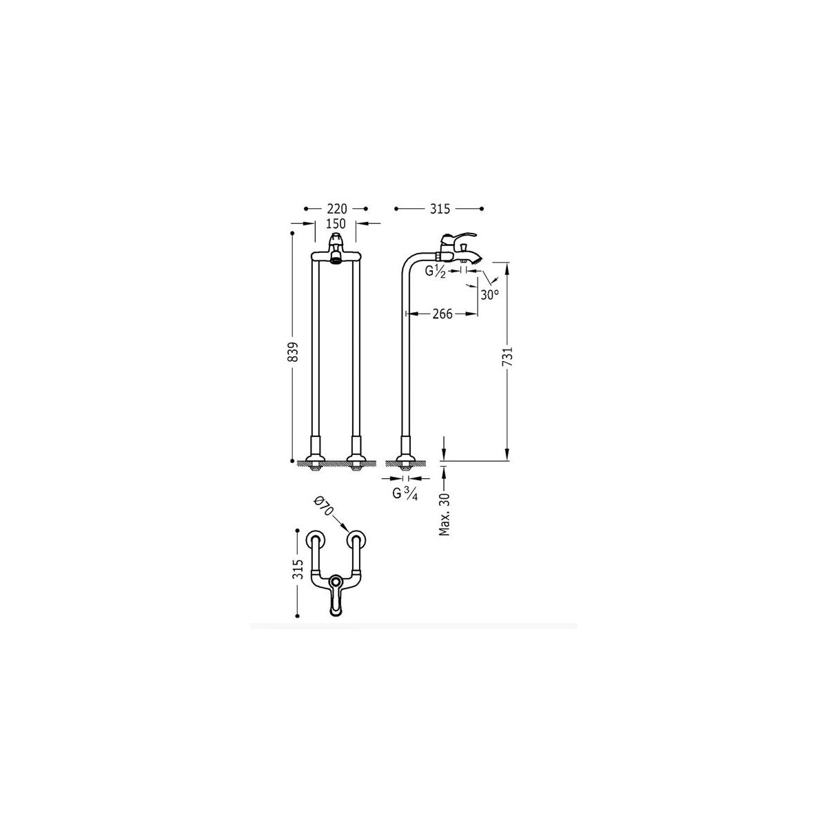 Tres Clasic-Tres Badewannen- und Duscharmatur freistehend || 24219402LM