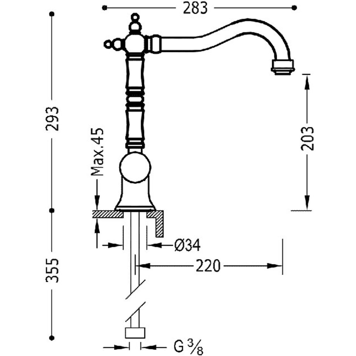 - mit flexiblen G3/8-Zuleitungsschläuchen
