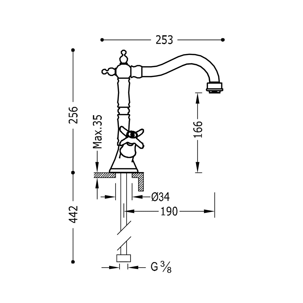 Tres Clasic-Tres Waschtischarmatur Stehend chrom 2.42.109.02
