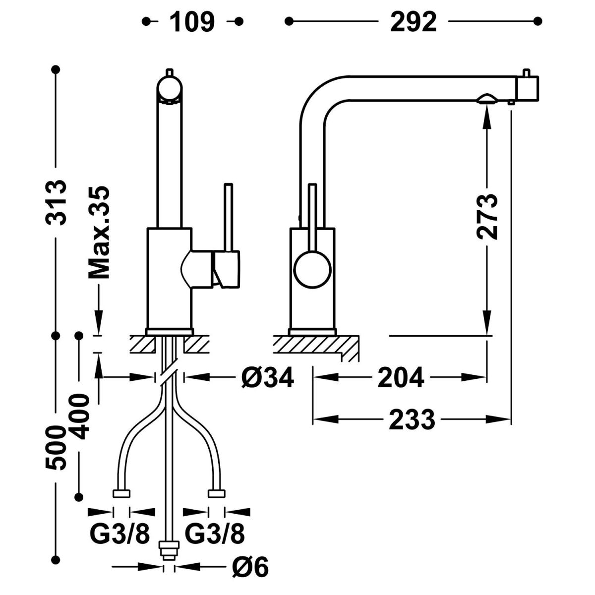 - flexible Versorgungsschläuche G3/8