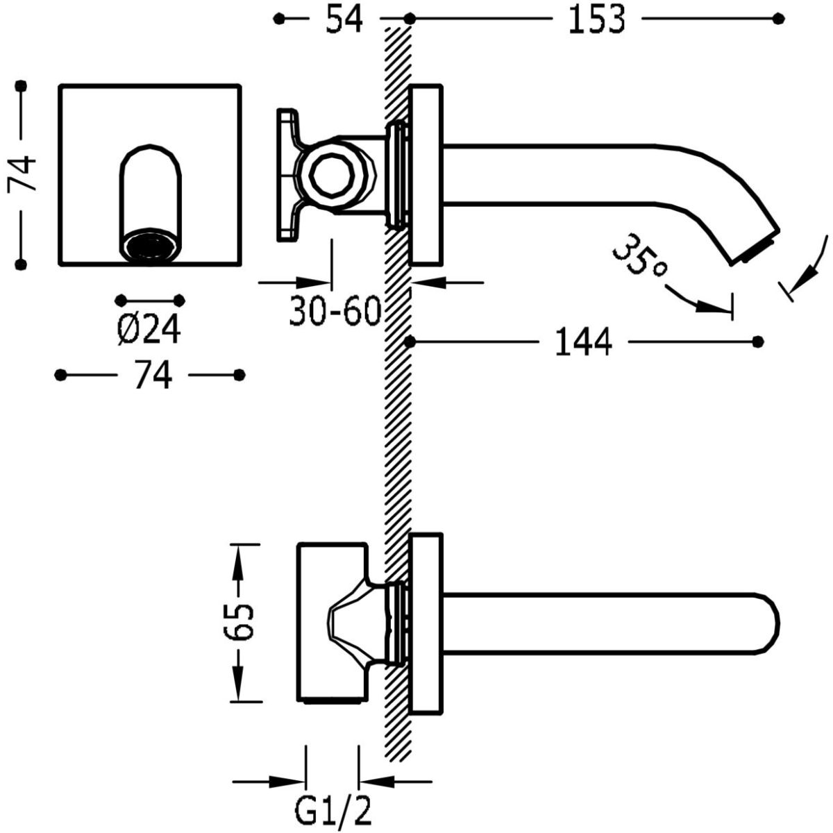 - Länge des Auslaufs: 153 mm