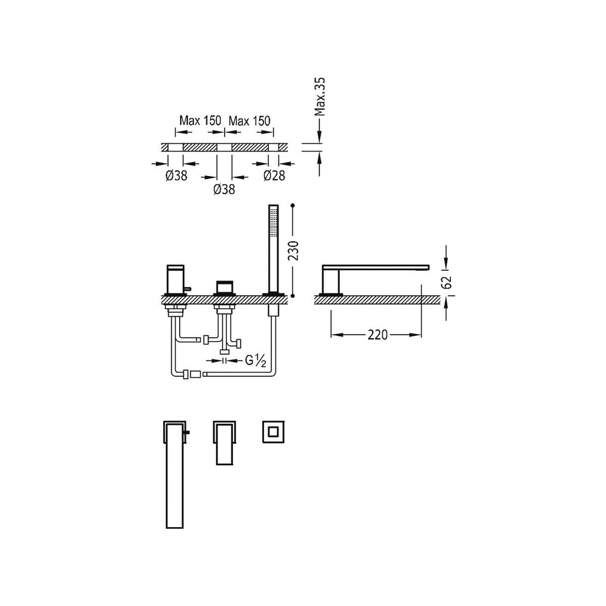 Tres Cuadro Exclusive Badewannen- und Duscharmatur awannenmontiert || 006.161.03.AC