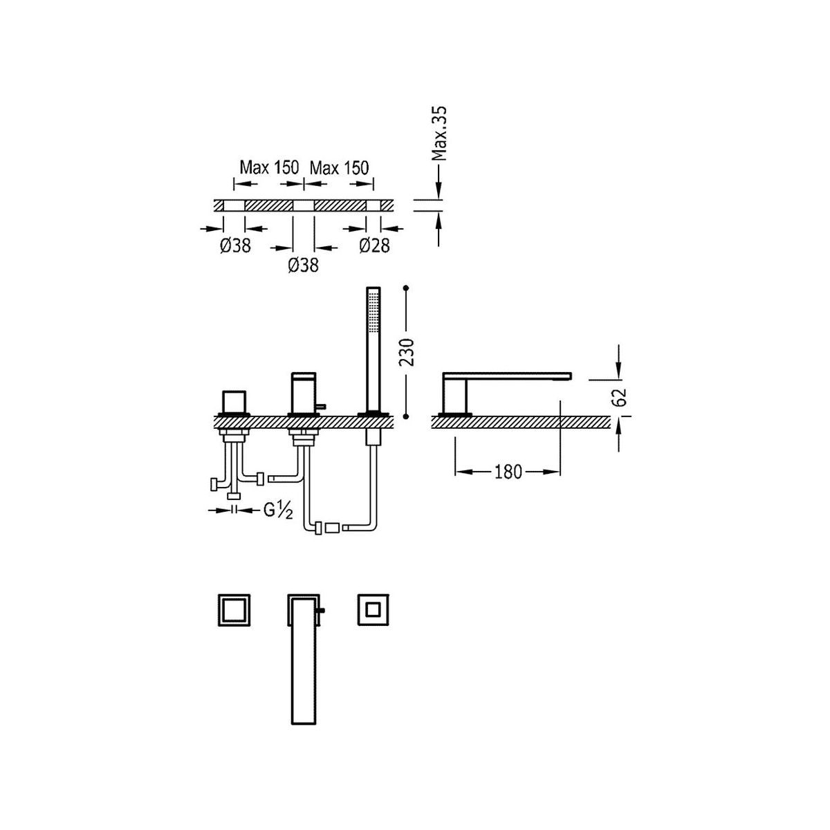 Tres Cuadro Exclusive Badewannen- und Duscharmatur awannenmontiert schwarz 006.161.05.NM