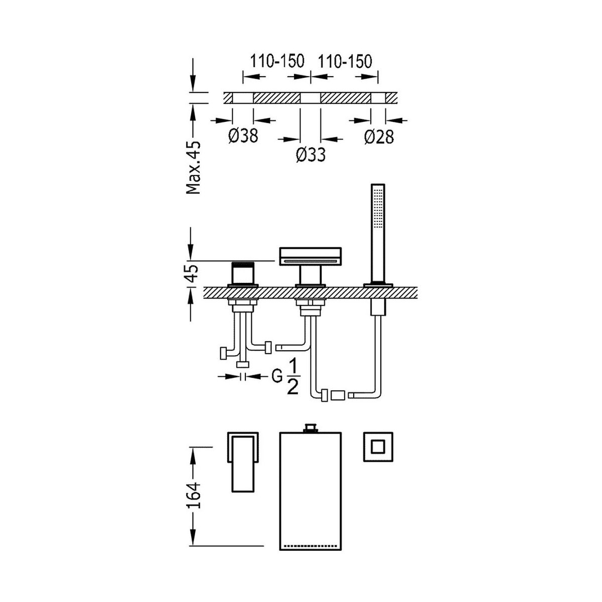Tres Cuadro-Tres Badewannen- und Duscharmatur awannenmontiert chrom 1.06.161.02