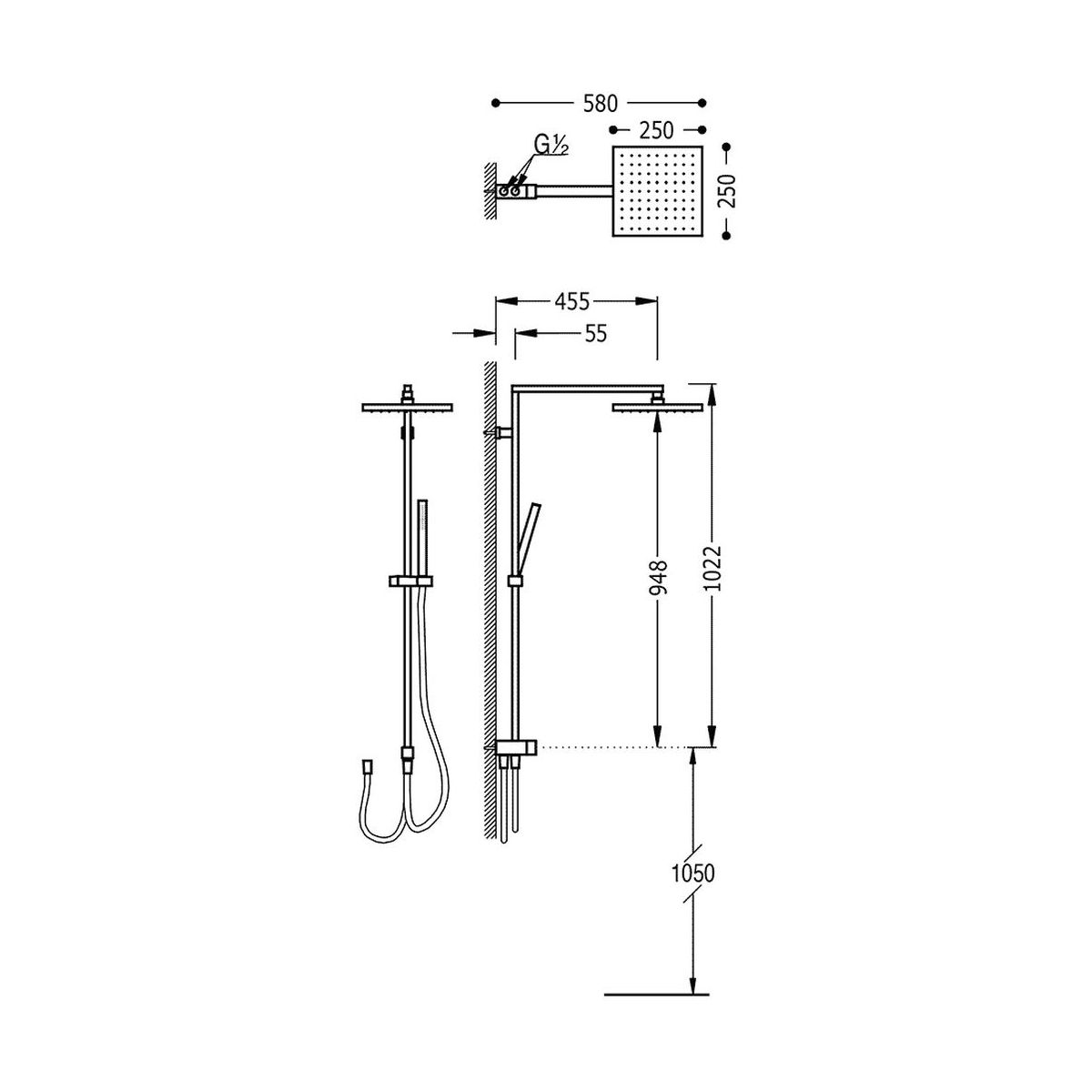 - Inbegriffen: Duschkopf, Duschkopf, Duschschlauch, Duschstange